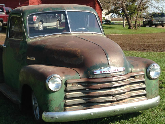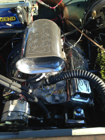 | 1950 Chevy 3100 short bed pickup with a 1984 Chevy S-10 chassis. Pickup was built by me with many new parts and some vintage parts in good shape. I will try to list everything that has been done to the pickup to bring it to the shape it is in today. The cab floors and cab corners were replaced along with the inside cowl panels on each side. 1974 400 SBC with aluminum heads Edlebrock intake and carburetor feeding headers and dual exhaust with Magnaflow muffler for a low throaty sound. TH400 transmission was professionally rebuilt to handle 500hp+ and it turns a 2000 Chevy Blazer rear end. A Lokar shifter with a 23" handle gives the cab that retro look and feel. Aluminum radiator with an electric fan keeps the motor running cool and all the chrome and aluminum under the hood makes it all look hot. The 1984 S10 chassis has new tubular upper a-arms 2" drop spindles 1" drop coil springs and new shorter shocks made for the suspension drop. Rear end has new 3" drop leafs and also the shorter shocks. 4 wheel disc brakes with 245/45R17 tires all the way around have the pickup sitting low but not too low to drive around. The cab has had alot of upgrades and also still has the patina of a rat rod. I completely rebuilt the heater assembly with a new heater core and a 12v blower motor. New Shark gauges and a E-Z wire wiring harness were installed along with a Custom Sound radio that mounts in original holes in dash and looks like a 1950 radio but it is a digital radio with I Pod hook up. Chrome steering column with tilt blinkers and 4 way flashers bring the pickup up to today's standards for the road. All the glass is new with the back and side windows being tinted and it has an outside visor to keep the sun out of your eyes cruising down the road. All the lights have been upgraded to 12v and everything works. Seat is out of a 1990 Chevy pickup but I do not have seat belts installed as of right know.Most of the parts were purchased from Classic Industries so you know they are of very good quality. I'm willing to make a trade as I'm looking for a Harley Davidson Street Glide. Delivery possible if conditions are right.This is a reserve auction as I'm not going to give the pickup aw$1000 down payment via paypal is required within 24 hrs after auction if price has been met and balance due within 7days via a certified bank check mailed to me that still must clear funds before I will release pickup. I've had people try to con me out of money and goods before and with a certified bank check it shouldn't happen. |