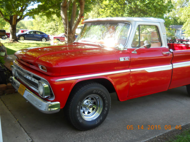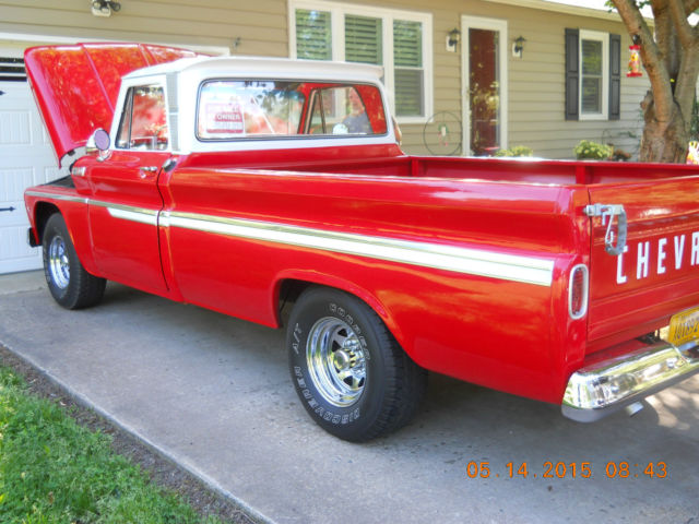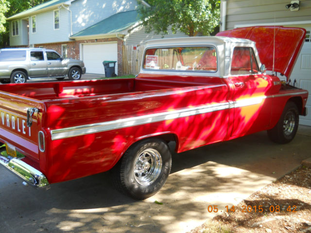 | Thanks for looking at my auction up for your consideration is my 1965 Chevy C-10 this truck is just about as nice of one as you will find at any price. Please look at all of the pictures and also watch the video so you can see and hear the truck running. Truck has a new crate 350 engine with Edelbrock manifold double pumper Holley HEI ignition Taylor wires and Autolite Platinum plugs the Transmission and engine have 2900 miles on them plaint and body beautiful and so is the under carriage the exhaust is Flowmaster new front to back the truck also has a new split driveshaft and new Kenwood stereo system. Again look at the pictures and video you won't find a nicer C-10 . The only flaw is the wooden bed has a little of the clear coat off but the bed itself is beautiful the whole truck is. I am selling it because I need to start commuting from Virginia to New Jersey and the C-10 is not the vehicle for that purpose. You could do very well in car shows with it certainly at local levels. Any questions please feel free to ask and I will get back to you as soon as possible. Shop around and compare trucks like it and you won't find a better deal than this one with no reserve. I will require a 100 non refundable deposit at end of auction and full payment within 7 days so please have your finances in order before you bid and get the permission of your wife or whatever you need to get. Too many scammers out on the internet and it cost too much to list and sell for games so bid only if you intend to follow through. Thanks for looking and the link to the video is........................................http://youtu.be/YZTVZnf8F24 . Again thanks for looking and feel free to ask questions I reserve the right to end the auction early if truck is sold locally and buyer is responsible for pick or shipping. |