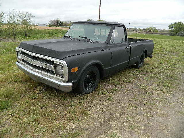 | 1967 chevy c10 2 wd pickup a western pu has a sbc 350 ?? not sure has hei disb 4 bbl carb auto trans power brakes and has a a/c box but no hoses or comp or cond. runs well has headers dual side exit exh. the body is ok the bed has its driver side dent issue and the pass has a spot the inside of the bed all in all is desent has the one rust hole showen in the pics . floors have some rot but not real bad. looks like the rockers were replaced at one time good windshield ITS NOT RUSTED ABOVE THE WINDSHIELD INSIDE OR OUT now your prob saying its not a 67 it has a 69or 70 grille etc your right on the grill but the cab is a small rear window with prob a hard to find rear slider window. the seat is ok not fact the dash pad and the visors have been redone at one time. i do have a matching vin # title that matchs the trucks cab. some one has lowered the truck some not sure on how they did it heated the springs ??? no idea for sure. the body is wearing a flat black paint job with body defects showing. I WILL BE HEADING BACK EAST MOSTLY ALONG I80 THUR PA will leave on JUNE 3 or 4 th so if you want it to go on the trialer buy it soon or it stays home !!!! CAN DEL IT ALONG THE WAY FOR 0.75 A MILE WITH A 500.00 MIN CHARGE EG YOU WANT IT DEL IN WESTERN IOWA ITS A MIN OF 500.00 DEL CHARGE . IT ALL HAS TO BE PAID FOR IN ADVANCE OR ITS STAYING HOME PLEASE CALL 308-631-5635 FOR MORE INFO THANKS ! SOLD AS IS NO WARR NO RETURNS ETC IF SOME ONE DOESNT WANT THE ENGINE ILL TAKE 200.00 OFF THE PRICE AND TAKE IT OUT I CAN USE IT IN A V8 S10 PROJECT THE ENGINE IS NOTHING SPECIAL WOULD LEAVE WITH HEADERS TRANSMISSION ETC |