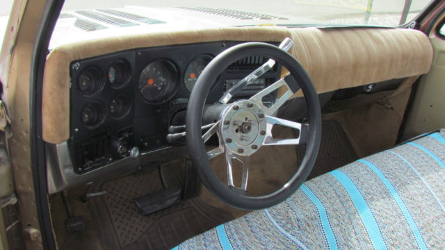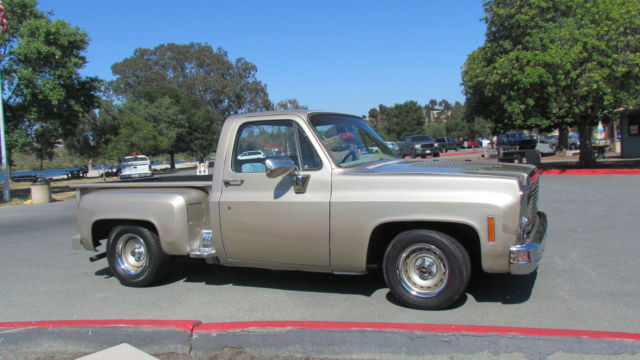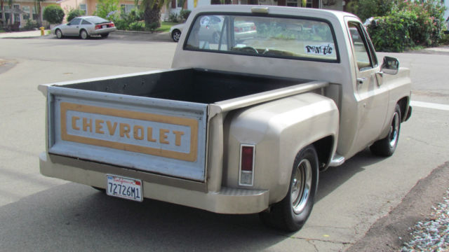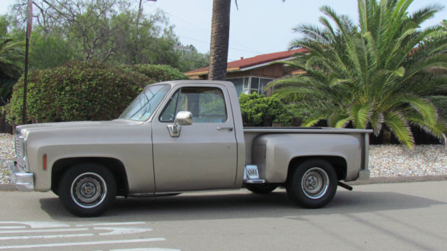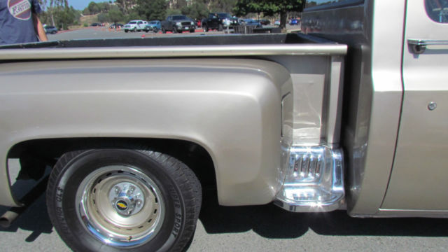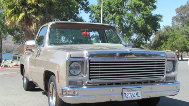| CUSTOM CHEVY TRUCK C-10 1974 . LOTS OF CHROME. CUSTOM HOOD WITH CHROME GRILLE WITH LED LIGHTS WITH A HEALTHY 350 ENGINE WITH CAM HEADERS DUAL GALVANIZED PIPES WITH TURBO MUFFLERS NICE SOUND. 350 TRANSMISSION VERY SMOOTH DAILY DRIVEN. CHAMPAGNE COLOR WITH BEIGE INTERIOR AND SEAT COVERS. POWER WINDOWS. 4 BRAND NEW TIRES WITH CUSTOM GOLD WHEELS WITH A RING. CUSTOM TAIL LIGHTS LOOKS NICE. WITH A SHORT BED WITH 2 CHROME SIDE STEPS. CLEAR TITLE. CALIFORNIA DRIVEN. SELLING BECAUSE LEAVING TOWN. A REAL EYE CATCHER. |