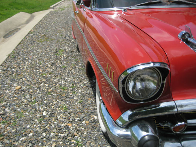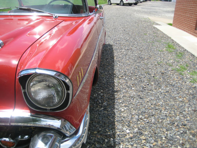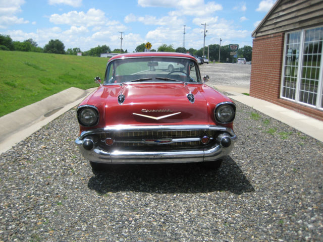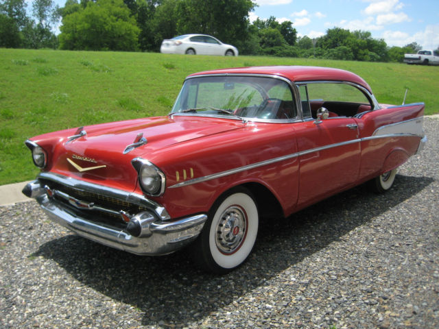 Up for your consideration a 1957 Chevrolet Bel Air Two Door Hard Top. We traded for this vehicle recently and now are comfortable enough with it to list it for sale. The car has a 350 V8 backed by a 3 speed automatic transmission (which matches the shift indicator). Motor runs very good and transmission shifts well. It has the original manual steering and manual brakes but has had a very nice add on a/c unit installed that looks like it came with it from the factory and yes it works. Car has electric wipers that also work. All of the gauges seem to work with the exception of the speedo because the needle is missing. Seats carpet headliner all in very good condition. The dome light even works. No cracked glass but some of the side glass is showing some age around the edges. Underneath the car is in very good condition with solid floors and no rust to speak of. Trunk floor and spare tire well are in very good condition. The only apparent rust it has on the passenger side bottom of the quarter (see pic). The car is an older restoration and is showing it’s age but would make a great driver just as it is. No reason to spend a dime on it if you want a cool car to cruise around. To be perfect it would need a restoration. Please look at the photos closely and ask any questions you might have. There is an issue with the title that will have to be worked out by the buyer. At sometime in the past the first two letters of the VIN were transposed. They read “CV” on the title and “VC” on the car. I have attempted to describe the vehicle to the best of my ability. Feel free to call or text 501-467-4951 for more information. Car is for sale locally so auction may end at any time due to local sale. Buyer is responsible for transport of vehicle.