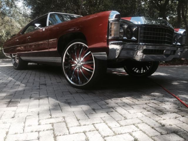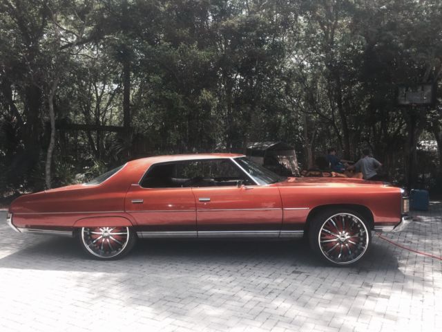 | You are looking at a 71 4 door donk 24" wheels stereo system clean interior 400 motor and auto transmissionCar needs a little tlc to be perfect Dual exhaust bid if you are serious thanks..please note not sure about odometer readCar defenarly turns heads and rides up the street like a monster!!! |