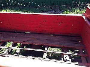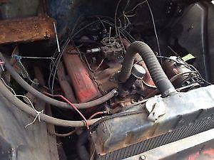 | This 1957 Chevrolet 3100 pickup truck originally came with a 6 cylinder engine. Years ago the original ownerconverted it to a V8 using all 1957 Chevrolet factory mounting hardware. Mounting is done by the use of two studposts at the front of the engine suspended on rubber biscuits for vibration isolation. This is the way the Chevroletfactory mounted the engine on V8 equipped pickups in 1957. Engine is either a 265 or 283 and it turns over butthe bad news is it was stored without sufficient antifreeze and has either pushed out a freeze plug or cracked theblock. Water leaks out from behind the exhaust manifold on one side so it being hidden by the exhaust manifoldI cannot see where it is coming from exactly. Good news is this truck has only resided on the west coast it'swhole life (we don't salt the roads) and more good news is that it has resided inside a dry storage building since1995 and therefore it does not have as extensive rusting as you will see in a lot of unrestored 1957 pickups. Sureit has rust in the usual places but take a close look at the attached pictures and you won't see cavernous rottinganywhere. Original factory installed granny gear 4 speed rearend and front suspension. Frame is original andunmolested. Radio space in dash has been cut on but I am supplying an original Chevrolet mid dash section torepair this radio opening. This dash piece I am supplying is NOT a reproduction piece. Original matching 1970'sera Aluminum dish mags manufactured by US Mags come with the truck. Tires hold air but are shot. Aftermarketair cleaner comes with sale as well as a new JEGS wiring harness that has been started to be installed but notnearly finished. Not an overly expensive harness but at least to the quality of the original wiring. The harnesscomes with the original JEGS supplied instructions. Hood opens and closes nicely the hood hinges workflawlessly. Doors don't close as good as they should would need hinge adjusting / repair to shut as well as theydid on the assembly line in 1957. Typical glass damage from years of use such as windshield wiper scrapes inthe windshield cracked side glass. Window regulator is bad on driver's door. Stock recovered seat inside cab.Rear bumper replaced with chrome step bumper many years ago as well as a hidden heavy duty trailer hitchinstalled then as well. It has dual exhaust looks like someone started to cut on inner fender wells to installheaders but stopped cutting early on. To cure this problem I am including a very nice set of ORIGINAL unbentused CHEVROLET INNER FENDER WELLS they are not reproductions. Usual dings and dents throughout butnothing beyond the scope of a good body man. I cannot see why fenders and such would need replacing. Thisvehicle comes with a clear title it is a regular title NOT a salvage or reconstructed title. VIN plate has never beenremoved or damaged in any way. VIN numbers on PLATE on door post matches the vin numbers on the frameby the steering box. Overall it would not be difficult to restore this back to original condition or if you choose to goin any other direction this would be a good solid starting point. |