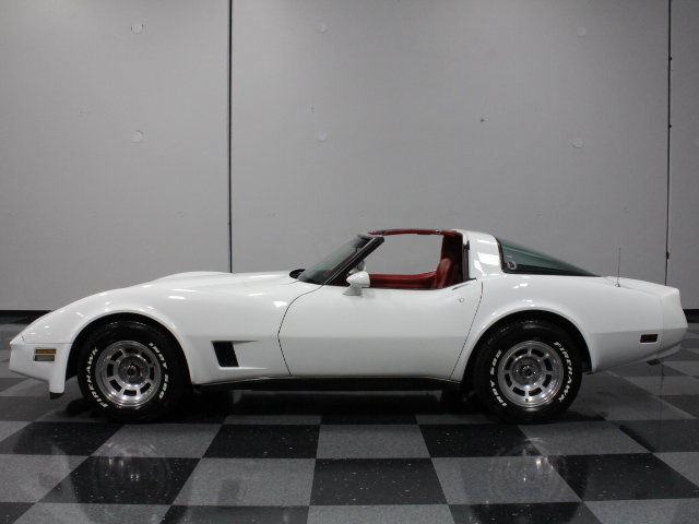 What this 1980 Corvette doesn't need is more eyeball appeal what with the bright white paint and vivid red interior. It's a fantastic survivor that's still in great shape and shows just 66895 actual miles and comes with a ton of paperwork to back it up. If it's pedigreed performance you seek this 'Vette delivers without a massive price tag to go with it. C3 Corvettes are established icons of performance and prices have stabilized giving new enthusiasts the chance to get into great cars without spending a fortune. The bad news is that finding a good C3 can be difficult simply because they haven't gotten much love over the past three or four decades. The good news is that this awesome survivor will get you into all the great Corvette events and looks great doing it. White paint was by far the most popular choice in 1980 and even today it looks good. It isn't dated like beige or gold or brown and thanks to years of care by guys who treated this car like something special it remains in great condition. Fit and finish are par for the course in the Corvette world meaning it's perfectly imperfect and the white paint offers a period-correct shine with minor signs of use and age. There's no denying the appealing shape of the C3 and when you show up in this car people definitely notice. The bright red leather interior isn't for everyone but if you're driving a Corvette your goal probably isn't a low profile. For me red is the absolute right choice offering elegance and flash in equal measure and the original interior is as nice as the bodywork. Sure there are a few creases on the seating surfaces and the original carpets are worn but is it worth replacing? I'm not so sure simply because erasing originality is often seen as a mistake these days. The original gauges are in good condition complete with the tachometer that parks itself at about 1300 RPM when you shut off the key. Luxury features were common in the C3 and this one carries factory A/C power windows and locks cruise control ad a tilt steering column as well as a modern Pioneer AM/FM/CD stereo head unit that seems to be the only deviation from stock. You'll also find that the "trunk" area is in good shape with a few clever storage areas and the original T-top bags. The 350 cubic inch L48 V8 made 190 horsepower in 1980 which seems modest today but the torque makes this car feel a lot more powerful than the numbers would suggest. We have every reason to believe this is the original numbers-matching engine and it has not been modified or abused in the last 35 or so years. You'll note that the factory air cleaner inhales through twin snorkels for a bit more performance and all the top-end equipment is stock. The TH350 3-speed automatic transmission slips through the gears without a hitch and the new dual exhaust system does away with the power-robbing catalytic converters which also improves the soundtrack. The chassis is remarkably clean and shows recent signs of work including the aforementioned exhaust system and some suspension components. Fat 255/60/15 Firestone radials give it a crouching stance that only adds to the car's aggressive look. Investment grade? Maybe this market gets stronger by the day. Either way if you want to have fun in a car with a bit of history and documentation (including the original build sheet) on its side you'll have a hard time doing better than this Corvette. Call today! |
