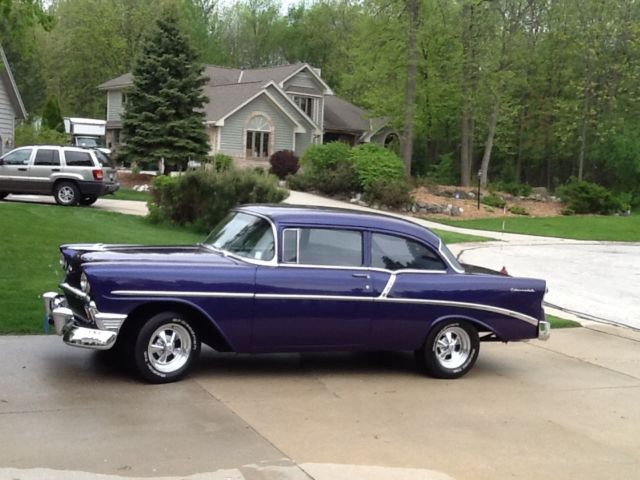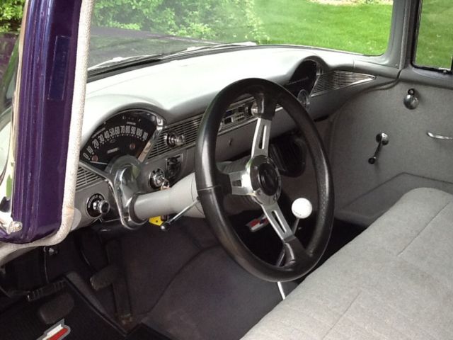 | 1956 Chevy Belair350 Engine - With Holley 4 Barrel Dual InjectionHeadersPower SteeringNew CRAGAR Mags - Larger ones on the Rear and Smaller ones on the Front.New BF Goodrich TiresRecently Proffesionaly Detailed Inside and OutNew Shocks all around |