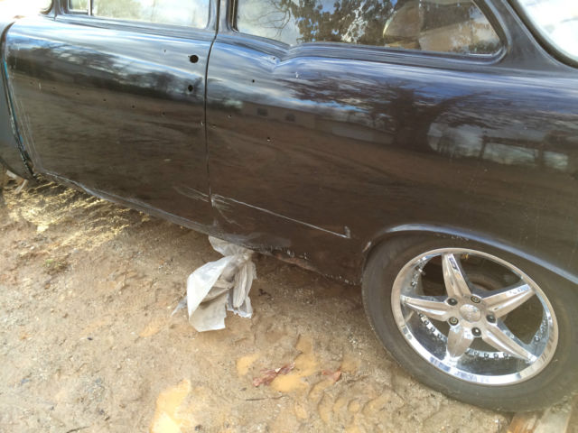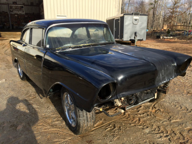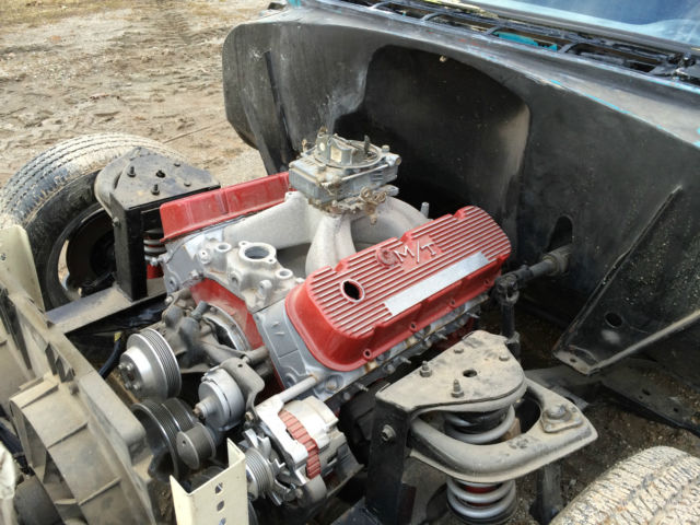 | Frame off restoration and lowered the body by 4". Currently setting on 4" blocks.We took the front suspension and posi rear end from a 2002 Camaro giving us a modified front end for its steering and suspension. We added a 4 link to the rear end. Went a little old school with the engine bling for the Hi performance 454 BBC and Muncie 4 speed crawler transmission and added an aluminium drive shaft.The 56 is dressed out with Foose 16". With the jet black base and clear coats it looks amazing with the fiberglass front end.The not so good stuff Note this is a roller. The engine ran well when taken from the donor car and the trans was rebuilt the clutch is brand new. We trailered the car but ended up scraping the paint just in front of the left rear wheel well from reloading it. The frame is true and body was completely gone through and undercoated. The Bumpers where rechromedOriginally the car had a straight six. The carrestorationwas done a couple of years ago but has been garage kept since I have owned it. I have to sell because I no longer have the funds and can no longer physically work on projects The remaining items are the interior and getting things running & finished the odds and ends including a near perfect set exterior of Stainless molding |