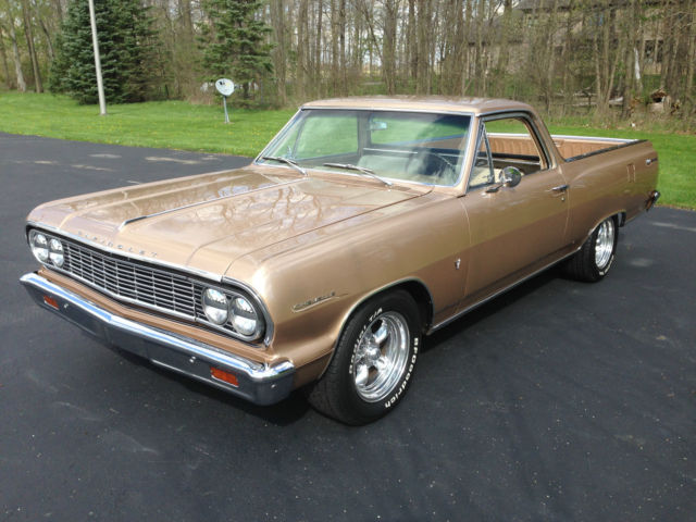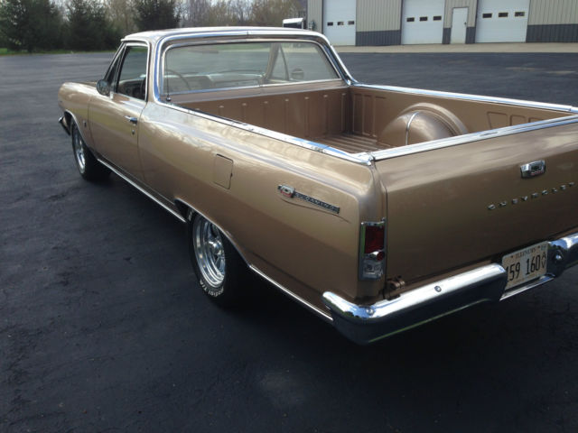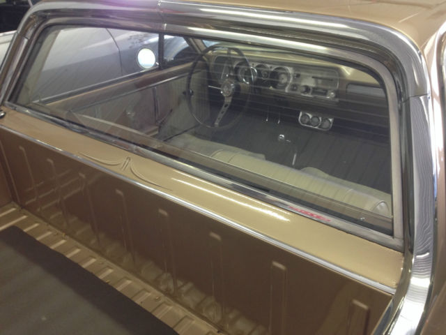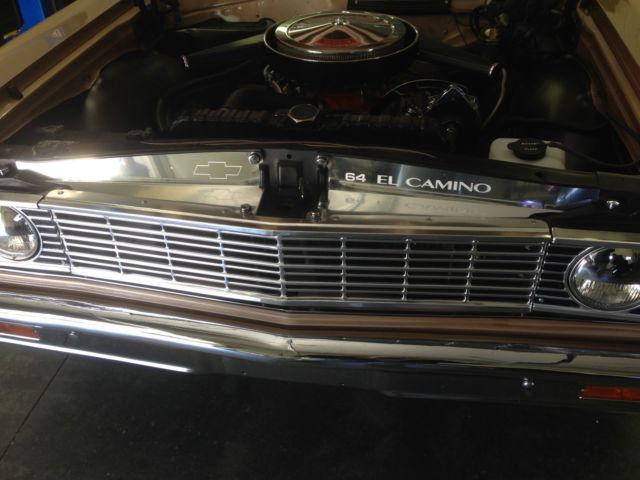 | 1964 Chevy El Camino . Original factory 283 4 speed with power steering and new air shocks. Numbers matching drive train with correct Saddle Tan Metallic #932 paint. Built in Califonia and raised in Arizona. This is a very solid car that has not been abused or cut up. Currently has Edelbrock manifold with 4 brl carb AM/FM 6 CD changer and bucket seats. New American Racing Torque Thrust wheels w/BFG radials. Original bench seat and radio are included. A very nice drive or show car that is priced right.I do not need any help to sell this car. Car is for sale locally and I reserve the right to end the listing at any time.Thanks for looking and contact me with any questions. 630-333-eight 7 four 9 |