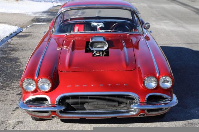| 1962 Corvette Hard Top/ConvertibleThis classic Corvette is ready to be personalized into the Pro-Street Custom Mod of your choice. It currently runs great looks great with no mechanical issues. There is some minor paint and body flaws nothing major Vette is in solid great condition. The Specs below are as follows;Engine: Chevrolet 383 V8 575HP 11:1 Compression Roller Cam & Valvetrain M.S.D. Ignition Edelbrock manifold 750 Holley Carburator Dart Aluminum Headers Steel Crank H-Beam Rods Forged 11:1 Pistons.Transmission: (4) Four Speed Muncie Hurst Shifter Centerforce Clutch & FlywheelRear End: 1957 Olds 9.# Rear Axle 4:11 Gears Ladder Bars w/ Springs moved inward.Front End: Stock Corvette Front Suspension Manual Steering & BrakesThis Vette is a classic thats a blast to drive. It is NOT a George Barris "built car". The owner produced video promotions with Mr. Barris and he loved the cars' unique look and signed the "grab bar".New seat belt harness mufflers exhaust Monroe cut off bar new top with headliner. The color is a Custom Ferrari RED. The hood was originally cut for a blower and is now as you see it with the high rise manifold pinned and secure.Thanks for looking! |