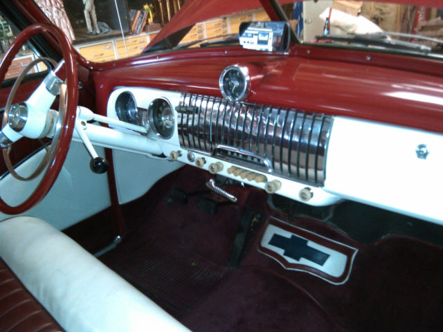 | UP FOR AUCTION WITH NO RESERVE! IS MY 1951 CHEVY HARDTOP THIS CAR IS AS STOCK AS COULD BE IT HAS A NEWER 6 CLY ENGINE BUT OTHER THAN THAT IS A VERY COMPLETE SURVIVOR IT HAS A BEAUTIFUL INTERIOR ALL PROFESSIONALLY DONE INCLUDING HEADLINER AND CARPET. THIS CAR STARTS AND RUNS STRONG NO SMOKE OR STRANGE NOISES IT CAN BE DRIVEN ANYWHERE IT HAS 4 NEW TIRES A NEW BATTERY AND EVERYTHING WORKS AS IT SHOULD. I HAVE HAD THIS CAR FOR OVER 12 YEARS. AND IT HAS BEEN A LOT OF FUN TAKING TO CAR SHOWS ALL GLASS AND CHROME IN GOOD SHAPE AS THE PICTURES SHOW . . |