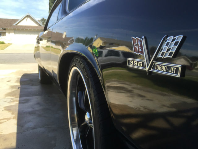 1967 chevelle ss clone . was my daily driver for a few years unfortunately it just sits in my garage most days. the back half has new quarter panel skins . originally a blue color was painted black 6 years ago. has small dings and scratches from parking lot trolls. 4 wheel disk brakes .396 big block. automatic very little rust. runs fine. needs wiring re-done . also needs 1 new muffler ( blew out when I flooded the carburetor changing to pointless ignition) needs seats re-upholstered . .2in. drop spindles . 1 inch drop front springs 2 in drop back springs 18 in boss wheels in front 20 in boss wheels in back new edelbrock shocks new poly bushings new gas tank . This car isn't perfect but doesn't need too much to get there. if you like to set a time to look at it just send me a message thanks for looking. :)Warranty DetailsThis vehicle is being sold as is where is withno warranty expressed written or implied. The seller shall not be responsible for the correct description authenticity genuineness or defects herein and makes no warranty in connection therewith. No allowance or set aside will be made on account of any incorrectness imperfection defect or damage. Any descriptions or representations are for identification purposes only and are not to be construed as a warranty of any type. It is the responsibility of the buyer to have thoroughly inspected the vehicle and to have satisfied himself or herself as to the condition and value and to purchase based upon that judgement solely. The seller shall and will make every reasonable effort to disclose any known defects associated with this vehicle at the buyer's request prior to the close of sale. Seller assumes no responsibility for any repairs regardless of any oral statements about the vehicle. Non-refundable $500 Paypal deposit due within 48 hours of auction close. Payment must be received in full prior to vehicle being shipped or at time of pick up. If payment is made by cashier's check vehicle and title will not be released until 10 full business days after received to ensure enough time to verify funds legitimacy. Buyer is responsible for all shipping arrangements and costs .