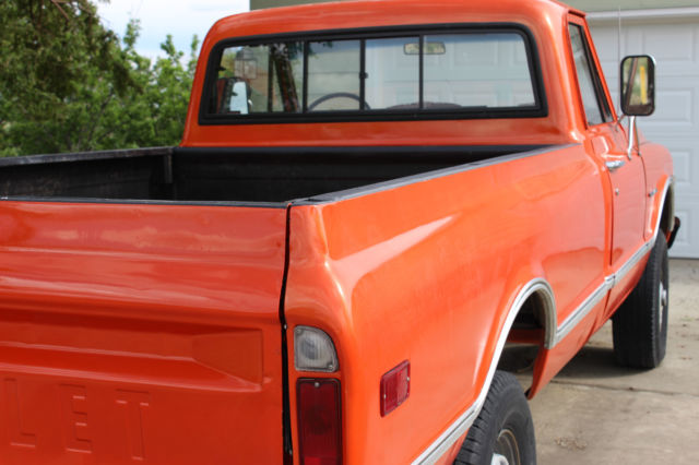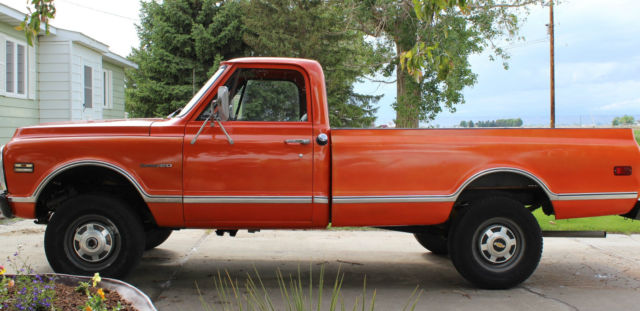 | For sale is a 1970 Chevy truck 3/4 ton 4x4 - 4-Speed. This Western Wyoming truck is 99.5% cancer free & is titled as a 1972 GMC. Previous owner installed a Chevy tailgate a 1970 Chevy grille & a drive-line out of a 1986 Suburban. The truck is solid and pretty straight (see pictures). The paint & body are not in showroom quality but does not look bad from a distance. The engine is a 454 with 72000 miles & change. Engine starts no smoke no knocks or ticking great oil pressure & operates at 200 degrees also drives well. If you are looking for a candidate for a full restoration look no further...or just use it as a daily driver! Truck has new windshield with seal new rear slider with seal & both doors have new door seals & all-window seals. Please check out all 24 pictures & contact us if you would like any more. Truck is sold as is with no warranty or refund. Payment of $500 non-refundable deposit is due immediately & remaining balance due with-in 7 days from purchase. I'm willing to work with the winning bidder on how long the truck can stay before picking up. I have a couple contacts for transport if interested. Please contact me with any questions. |