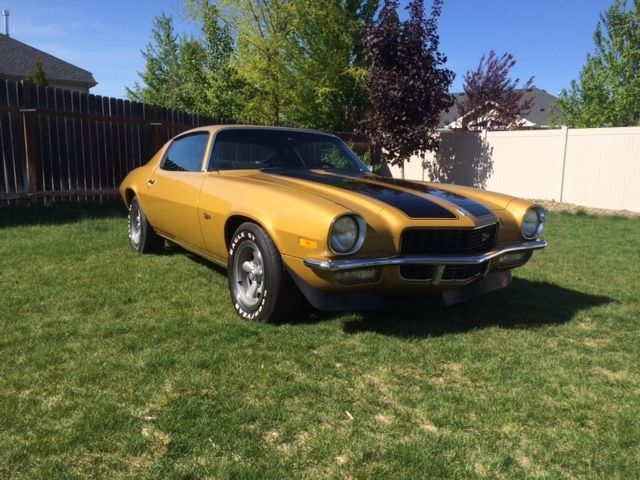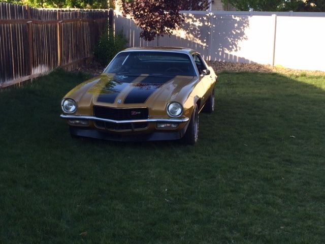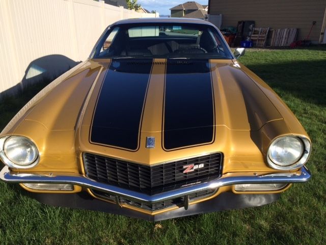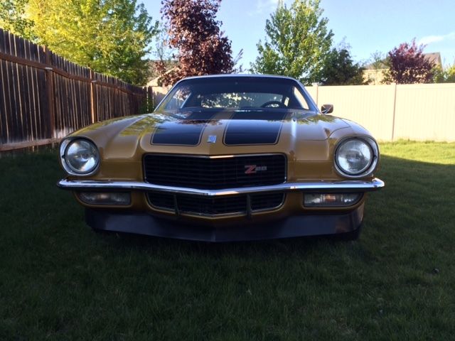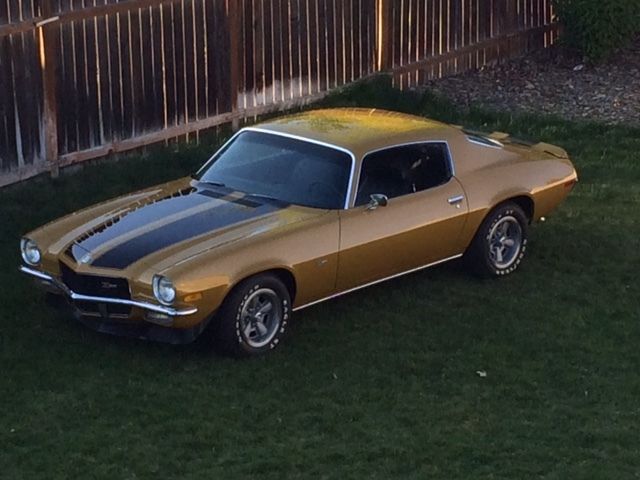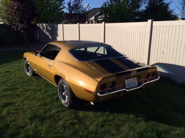 | Real 1970 Z28 built in LA. LT1 350 (360HP 380ft lbs torque 11:1 solid lifter cam) muncie 4-speed. Has had a repaint but is mostly a survivor. Has the 8k tach floor mounted gas pedal welded on rear sway bar brackets larger sway bar aluminum spacers on control arms under bump stops rear bumperettes Z28 spoiler #s matching engine with correct suffix number and partial vin on block by oil filter( I can see 70L) and transmission correct heads carb etc.. Car was built in February 1970 engine and tranny were dated late January 1970. Has a 12 bolt rear out of a 1970 SS camaro (Previous owner said was easier to swap rear than rebuild old one) Headers were added at some point in its life and has had exhaust upgraded to 2 1/2" so it sounds great pertronix kit installed in stock distributor for better reliability new brakes new rear shocks runs and drives great. Goes straight down the road and is a blast to drive. Nice unrestored car odometer shows 80K. Bottom of the car looks good no rust. Trunk looks good inside most of the chrome and emblems are original Interior is a good driver quality meaning not perfect but no tears or rips just original. Car is its original Gold Color as trim tag states. Car runs drives and sounds as it should. I can send video of it running if desired as well as more pictures. Own a rare musclecar that is going up in value.On May-08-15 at 13:08:24 PDT seller added the following information: |