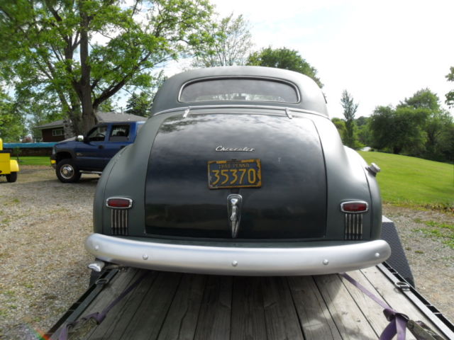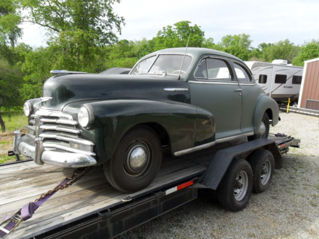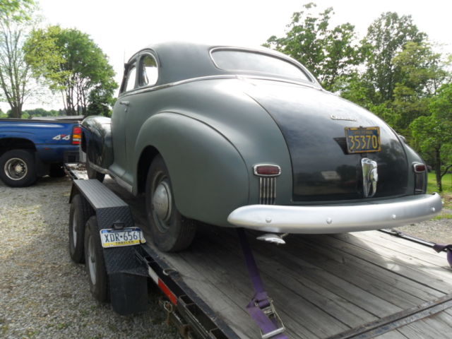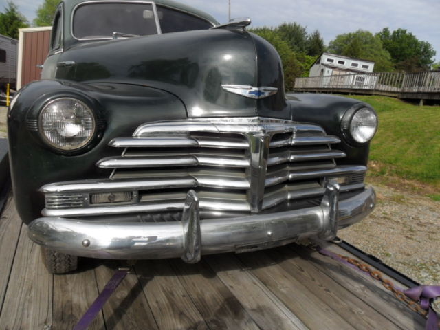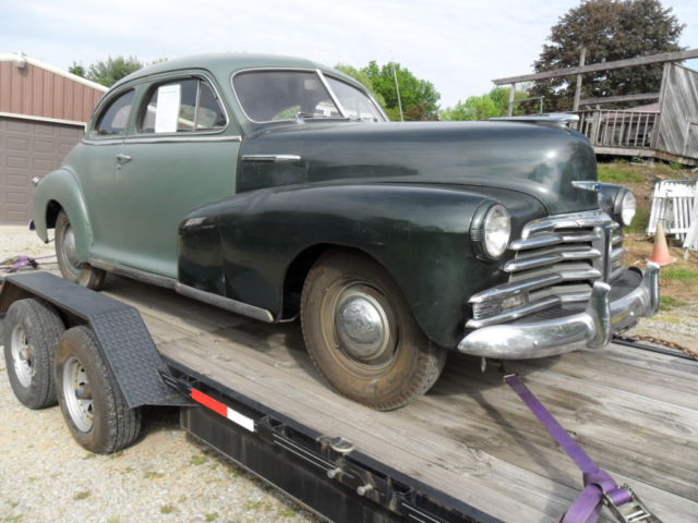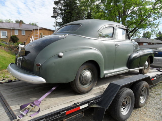 | Original 1948 Chevy coupe 82000 miles original 6 volt 6 cylinder 3 speed on the tree. Runs and drives. The fuel pump was replaced the carb / tank gone through. New water pump / radiator gone through. Decent original tires. Original floors trunk floor floor mat factory radio (lights up does not play) steel fenders good windshields and side glass all roll up and down and operate good new battery. Starts good with original floor pedal has throttle control. The brakes were gone through years ago and seem good but probably need checked again to drive all the time. Had a fresh oil change. It looks like 1 body mount may have been repaired and around the rear fenders repaired but they have pieces welded in and look OK. Other than that the original floors etc look good. I have driven this up and down my road a few times but that is the extent of it.The headlights brake lights and all the gauges including speedometer work. Complete newer exhaustWipers and turn signals don't work.Same owner the last 20 years. Clean / Transferable PA title.Could be easy daily driver or excellent start to Street Rod.Will consider reasonable offers. Bought As - Is no warranty or condition implied.Email me with your phone number and I will call you.I encourage an actual inspection if close enough.License plate not included. |