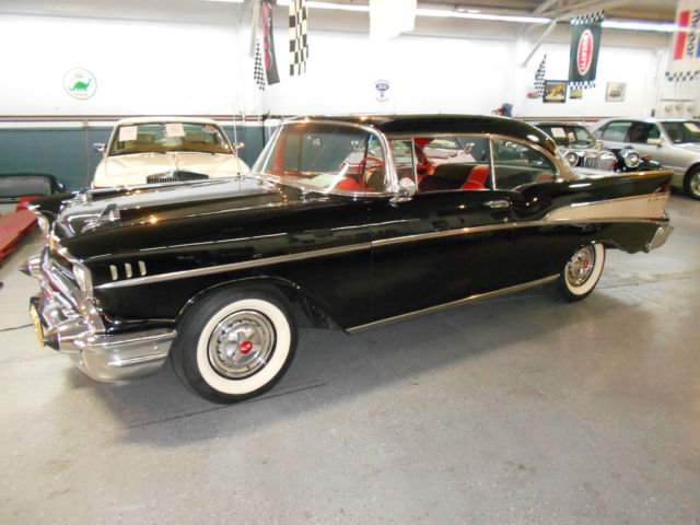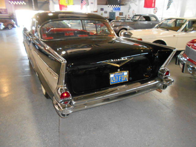 | This is not some cut up 350 V8 It has been restored to ORIGINAL that's what makes it a true investment. 1957 Chevy BelAir hard top coupe. Original California car one piece California front bumper. Driven by the original 283 V8 Power pack zero rust original hub caps wide White walls factory correct from the bottom to the top. Finished in original Onyx Black with Black and Red interior. Easy to drive dependable American Iconic looks and a very sound investment. This car is ready for car shows Sunday outings or just about any type of driving very dependable and a GREAT investment. Collector owned for 30+ years 1970's Blue and Gold license plates. These don't come around this nice very often. Clean title truly a must see. #146044. Now on display at the home of "over the top cars" CHECKERED FLAG CLASSICS 7743 MONTEREY ST GILROY 408-847-8788 sold as-is California buyers are responsible for sales tax and license fees. Buy with confidence I am a licensed bonded California dealer. This American Icon is for sale locally therefore the auction can end at any time.. More pictures on request. |