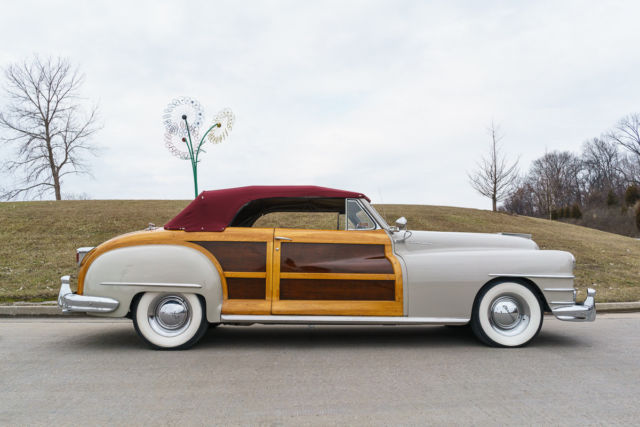 323 C.I. Straight 8 Cylinder 2 Speed Fluid Drive Transmission Excellent Wood Dual Spot Lights Fog Lights Burgundy Power Convertible Top New Chrome & Bright Work, AM Radio Clock Under Dash Heater w/ Defrost Full Size Spare in Trunk, Bumper Guards 15” Steel Wheels w/ Factory Wheel Covers New Wide White Tires Stunning Color Combination |