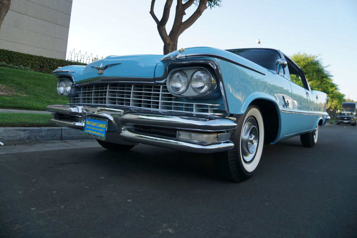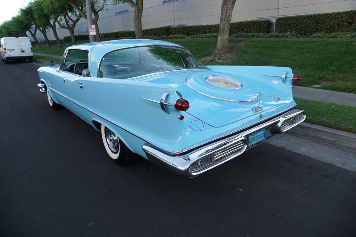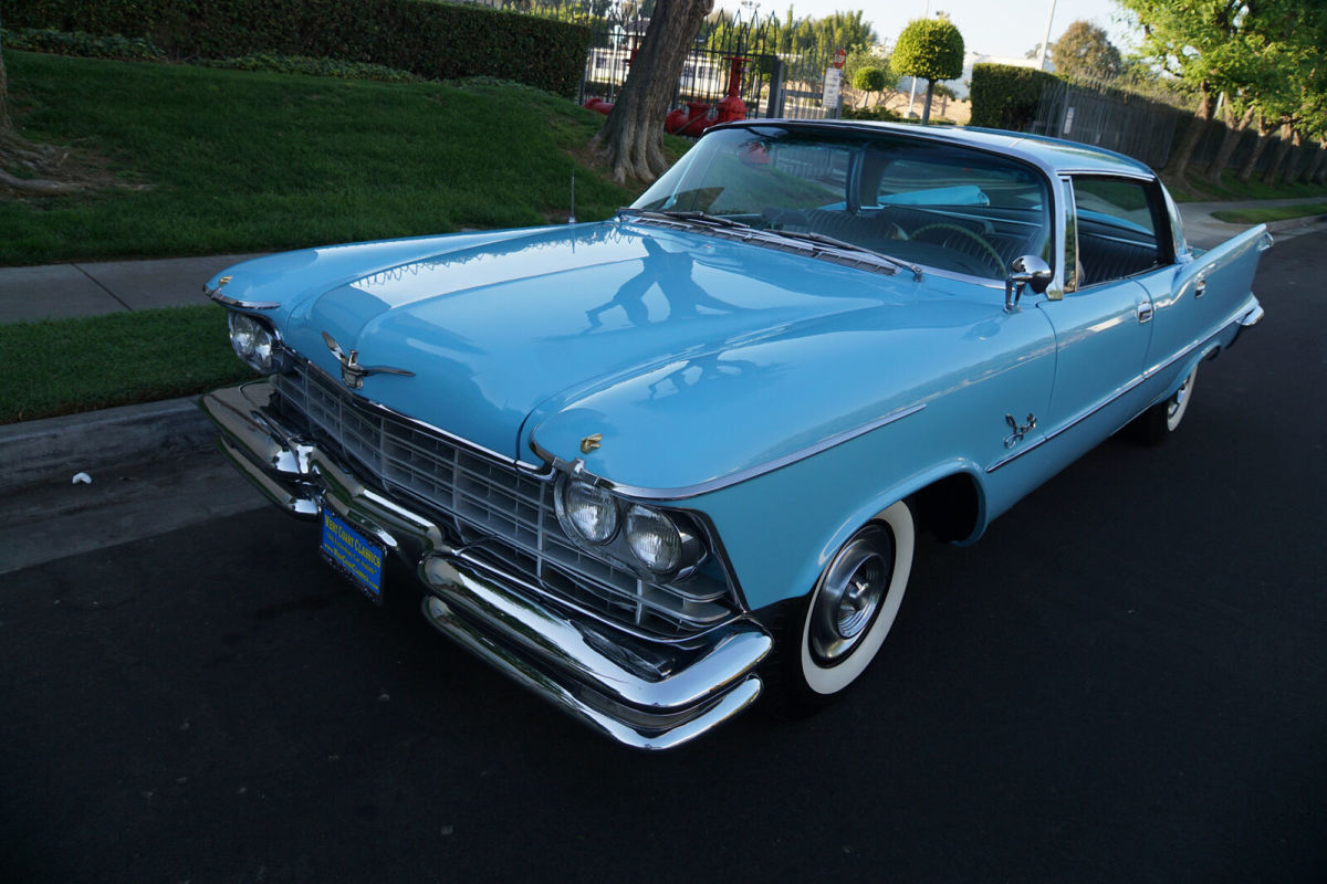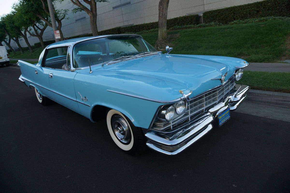 West Coast Classics are proud to present an exceptionally straight and rust free and great daily driving survivor of this very rare and original Mopar - a southern California 1957 Imperial 'Crown' South Hampton 4 Door 6 passenger Hardtop originally purchased new by Mrs Lauren Bacall Bogart in Hollywood, CA and boasting it's original 'Horizon Blue' (Color Code B) factory paint with with its original 'Light Gray Metallic' leather, to include original 'Crown' embossed front and rear, (Trim code 47) factory interior & it's original 392c.i. FirePower 325HP 4BBl V8 engine and factory options including; TorqueFlite automatic transmission, leather interior, power steering, power brakes, power windows, full floor carpeting, electric clock, full wheel covers, front & rear pull down armrests and with added factory options including: 323 Heater & Defroster 324 Defogger 325 Power Disc Brakes 326 4 Way Power Front Seat 327 Power Steering 328 Power Windows 331 Vanity Mirror 332 Solex Glass 334 Tilt Mirror 349 Dual Headlights 351 Power Antenna 356 Electro Touch radio 357 Flitesweep Decklid One of very few such remaining examples especially in such original, unmolested and documented condition and a top-of-the-line model for the Chrysler Corporation. This particular car has always been owned since new by only obviously very careful and mature owners and it is a car which has seemingly always been garaged as it is both a rust and accident free true survivor! Originally purchased and owned by Mrs Lauren Bacall Bogart in Beverly Hills, CA with original purchase documentation & owners manuals etc to be included in the sale. Mrs Bogart acquired the car new on 2/7/1957, three weeks after the passing of her husband Humphrey Bogart, from 'Harger Haldeman' the Imperial-Chrysler-Plymouth dealership of Los Angeles, CA and we have full documentation including the original dealers date of service certificate and original CA registration showing the original owners name and signature and Beverly Hills home address. Also discovered by chance, whilst refurbishing the seat inserts with the optional metallic Silver leather in the tuck & roll pattern, was a credit card receipt from a local Richfield gas station on Sunset Blvd in 1957 signed by Mrs Humphrey Bogart no less! Imperials most popular model year; 35,793 produced, including only 7,843 Crown Southampton Four-Door Hardtops with the new for '57 392 cu. in. 325HP Firepower V-8 engine with the legendary and flamboyant Virgil Exner styling, the first year available with quad headlights and with what appears to be a mostly all original factory interior apart from our refurbished seat inserts. The car was recently purchased from a renown collection and boasts its original 392/325HP 4 barrel V8 engine which is extremely strong and powerful and sounds absolutely magnificent and this particular car drives absolutely magnificently - must be driven to be fully appreciated - does not miss a beat and purrs like a kitten - drives straight as an arrow with no strange road wobbles, shakes or rattles - a truly remarkable daily driver that will give any modern day car a run for it's money! The Torqueflite automatic transmission shifts smoothly through the gears and the car is an absolute pleasure to drive! The car has obviously always been well maintained and all the options work as they should and the car boasts its original spare wheel and jack in the trunk! Chrysler's best car was spun off as a separate make and division beginning with the 1955 models and what a terrific car it was! Chrysler now had 5 divisions with a line up of cars to match GM in every market level with the Imperial as it's top-of-the-line model directly aimed at Cadillac and Lincoln. Styled by Virgil Exner along the lines of his 1954 Parade Phaeton show cars. A big split eggcrate grille with parking and turn signal lamps integrated atop the front bumper and the new streamlined Imperial hood ornament was used up front with distinctive gunsight tailights adorning the rear and sculpted flowing bodylines with fully radiused rear wheel openings appearing in between with the distinctive freestanding chrome trimmed tailights atop the rear fenders. A wraparound 'Super Scenic' windshield made it's first appearance and power was supplied by Chrysler's Hemi V8 to ensure the car's heritage as a true and rare milestone car and in 1956 a newly enlarged 354 CID V8 engine powered the very lightly restyled 1956 model. The Hemi V8 received its first major upgrade this year in the form of more displacement and increased compression ratio. The new engine was 354 cubic inches and horsepower was up 30 to 280 @ 4600 rpm. The Powerflite transmission returned for one more season in the Imperial but now featured the pushbutton shift control from a pod mounted on the instrument panel instead of the previous years one year only 'Finger Tip' shift lever located on the instrument panel. The base Imperial line also gained a 12 volt electrical system this year that helped support the growing number of standard electrical features now common in all luxury cars. At the front the cars were nearly identical to the 1955 with all the big changes were at the rear of the car. It began with the chassis and wheelbase of the base Imperial being stretched 3" at the rear. This allowed for longer rear quarters with slightly redesigned full length bodyside trim which wrapped around the larger tailfins. Also rear bumpers were redesigned to better integrate into the body and new rear quarters. In 1957, with a total redesign of the entire Chrysler corporate line, the Imperial leapt leaps and bounds ahead of the competition in terms of styling and design and was considered the finest expression of the 'Forward Look'. The redesign also brought Imperial a body that was not shared with other Chrysler models, at last breaking the ties with Chrysler's lower priced models. The Imperial followed the corporate theme of longer, lower and wider as well as the sweeping ta