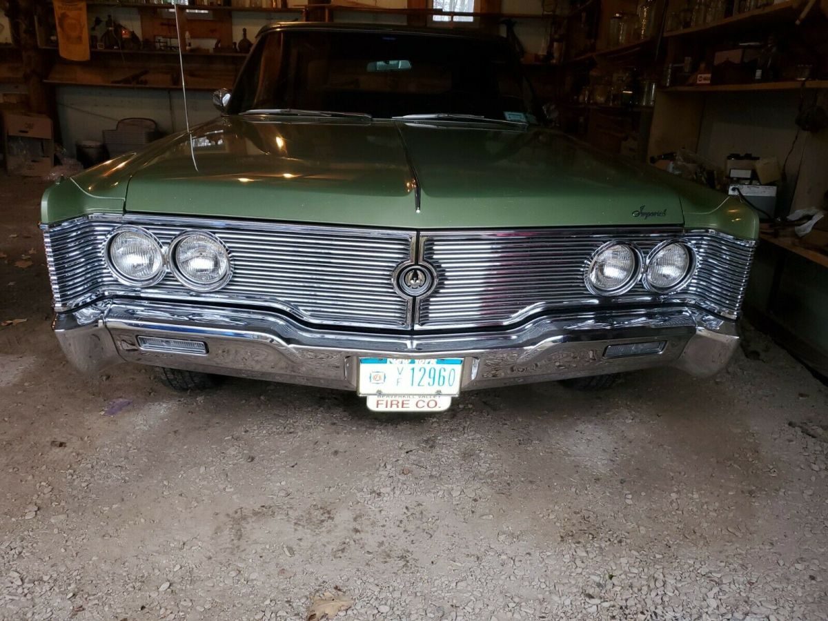 1968 IMPERIAL CROWN CONVERTIBLEONE OF 474 PRODUCEDHAS BEEN PART OF THE HISTORIC CHRYSLER SURVIVOR SERIES A FIRST PLACE WINNER IN AACA MUSEUM EXPO STRONG 440 TNT WITH DUAL EXHAUST CRISP CLEAN UN MARKED LEATHER POWER BUCKETS ORIGINAL ANTIQUE GREEN LEATHERETTE POWER TOP WITH GLASS BACKLIGHT -NO RIPS OR STRESS MARKSPROUD TO HAVE BEEN IN MAGAZINES WAS THE FEATURED SHOW CAR IN THE 29TH ANNUAL SCRANTON REGION AACA . 68000 PAMPERED MILES IMMEDIATE DEPOSIT OF $1000. DUE AT AUCTION CLOSE |