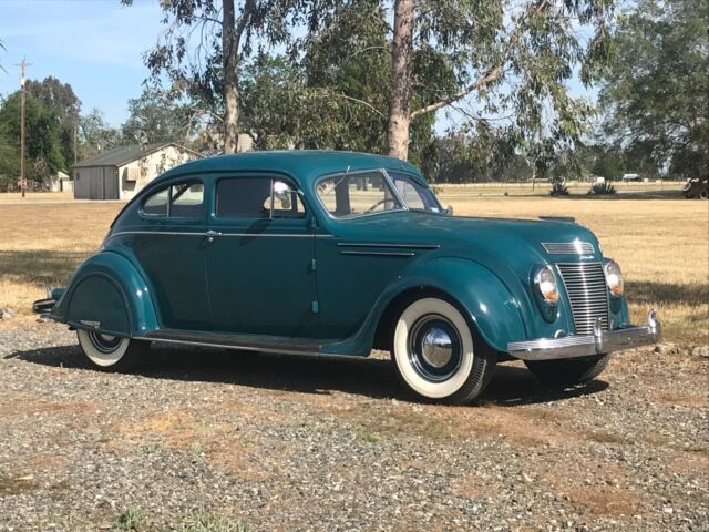 . There is no rust in the body or frame, so no metal repairs will be needed. The body tag does not designate the paint color but Parrot Blue is the color. The engine compartment and underneath the car are very clean, but not detailed. This is a complete car with no missing parts. All items on the car operate as they should. If you have never driven an Imperial Airflow eight-cylinder car, with 125HP, you will be amazed. With the factory automatic overdrive, the car is easily capable of modern traffic speeds, exceeding 70+ mph all day long. It literally “floats” down the road. It also stops like a more modern car, with factory power brakes. This car is also equipped with a factory heater which includes dash mounted defroster. All of these items are far ahead of their time for an early 1930’s car. All Chrysler Airflows have a split windshield, with both sides cranking out independently for maximum airflow, combined with the rear roll down windows and “wing” windows. The price on this car is set low because the new owner may want to do more work, if he so chooses. Nothing is needed to be done to drive and enjoy this car. Keep in mind this car is a full CCCA classic and very rare. MANY MORE PICTURES AND VIDEOS AVAILABLE UPON REQUEST.