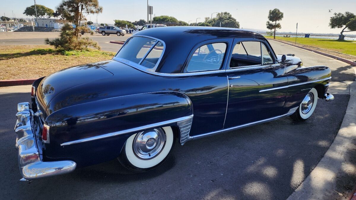 1950 Chrysler Windsor 2 door. 6 cyl flathead with fluid drive Vehicle Details This is a mostly original and unbelievable kept and cared for 1950 Chrysler Windsor with the original 6 cyl flat head motor and a fluid drive transmission. The car has been repainted once and the seats recovered but other then that this car is an original survivor. Right down to the mohair headliner. The car has been garage kept in southern California it's whole life and is amazingly rust free just look at the pics. No rot or holes anywhere. The car runs and drives fantastically. The old 6 cyl fires right up and purrs. The fluid drive works as it should and shifts smoothly and she stops great. This car needs nothing just get in and cruise it. |