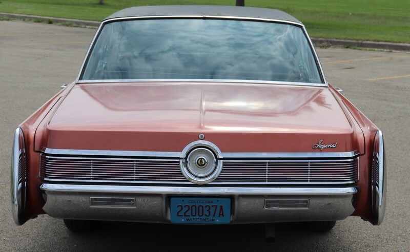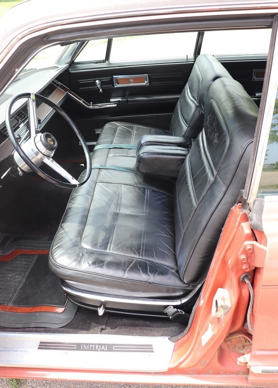 1967 Imperial Crown four door.Turbine Bronze - Black vinyl top - black leather interior440 engineStarts easy and runs & stops wellHas exhaust header leakRear quarter panel has been repainted due to crash many years agoPreviously titled in WashingtonA/C is NOT workingRadio powers up, but no soundElectric antenna worksALL 5 lighters workRear driver side window motor not operatingTurn signal arm does not stay down by itselfno rustCan be seen and driven in Green Bay WII'll consider driving it to buyer, if you pay expenses We moved last fall and do not have room for this big boat anymorewe will miss "Milburn"