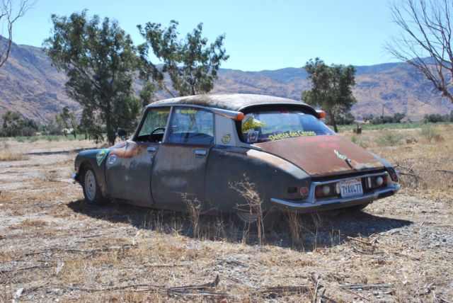 1972 Citroen D Special VIN 00FC1790, 2 liter engine, 4 speed mechanical shift gearchange. Welcome to my listing for the LeMon Goddess. This is your chance to buy a largely fettled rolling restoration at a fair price. Don't dawdle. We only have one of these and none in the pipeline today. The car is a 1972 Citroen D Special, USA Export spec. Mileage is unknown. Probably under 200,000 based on driving characteristics. I helped a previous, previous owner buy the car years and years ago now.I bought the car sight unseen for my junkyard operation last year based on a description offered to me over the phone. It was running but had a clutch problem. It was delivered to the yard and we threw it into the bone pile.Several months later, a prolific Peugeot aficianado and veteran LeMons participant spotted it and oh boy. Here we are today.The car was pulled from the bone pile, pressure washed inside and out and brought into the shop. Following a compression test (cold 115,115,110,140) the decision to proceed was made and the following things were done based on the following criteria: You are only allowed to use what you find in the junkyard or behind the shop door. You cannot call and run up a parts bill on the car. So a lot of stuff happened. New clutch disc and pressure plateNew water pumpRemanufactured alternatorNew fuel pumpCarburetor overhaulAir filter servicedNew main sphereRoad spheres charged4 new 185-15 tires mountedBrake inspectionElectrical system sorted to a point of roadworthinessWater pump bypass hoseUsed 3 row radiator (Oregon car had a 2 row)New fan beltsNew mufflerBattery raped from the car haulerRust repair in lower trunk area using SikaFlexTransmission service2 axle boots1 rear suspension boot (new)Fuel filterEngine oil and filter changedNew coolant Midnight, Sunday, before car week, the car left the shop after a 30 mile shakedown tour. I didn't see it for 14 days. But I heard about it. I went to Monterrey car week. Everybody was talking about this car. The car returned to home base (Yucaipa, California 92399 USA) having covered 3,995 miles and carrying the 2nd place LeMons trophy after scoring every available rally point after initial inspection and check in. The trophy will be sold with the car. At this point, the car was serviced with clean motor oil, a used starter was installed, the chassis was greased and it got a new axle boot. We also replaced the broken windshield with a good used one. A used turn signal switch was installed. The car has been driven 1000 more miles since that service. The car averages 23 mpg. The pictures were taken today. Needs list: Rod out/recore used radiator? It runs on the hot side but doesn't overheat and puke fluid. At least the gauge says it does. Hydraulic pump leaks but is not gushing. Front suspension height should be looked at. The adjustment lever is wonky and the linkage may be damaged. Replacement linkage parts will be included with sale. Paint and interior? Needs everything unless you want to keep the moss that was growing on the roof when I bought the car and the custom duct tape and blanket upholstery that is currently in place. Trunk rust? It's your call. It has been repaired. Myself? I would ignore it unless doing a full restoration. Door pin switches for interior lights need attention. Keys don't match door and trunk cylinders. Some work. Some do not. To answer some questions: Can I drive the car home?Yes. Unless you choose to take an underwater route. Is the car registered and insured?Yes. Clear California title is between DMV and someone's mailbox today. Is the fuel tank clean?Yes. But the fuel gauge does not work. Is it running LHM?Sort of. Someone added Dexron during her time on the road. Not a problem. But should have a fluid flush at next service. Can you address the future and current needs of the car before I take possession?Maybe. We are busy and we have some significant life challenges within the confines of our day to day operation. How bad are the dents?Please look at the pictures. Additional pictures can be provided for seriously interested parties. Does it have a jack, crank rod and spare tire?Yes. Do the windshield wipers work?Yes. The blades are new. Does the horn work?Yes. So do the blinkers. Does the clock work?Yes. Can you crank start the engine?Yes. Does the engine use oil?Yes. Consumption varies based on how hard you push it. I'm told about 1 quart in 1000 miles. Does the heater work?Yes. Including the blower fan and vent controls. Does it have keys?Yes. Door locks need attention. Do you have the hubcaps?No. They were lost on the side of the road somewhere in Oregon or Washington. I may be able to find a set for extra cost. Are parts and service available?Yes. Parts widely and completely. Service? Not so much unless you know where to look. What is RSD?Google is your friend. RSD is painful and life changing. Having it sucks. The sticker was added to the car to further public awareness as the disease and research for it get no attention. What is the reserve price?The same as I could get for it in pieces if we throw it back into the junk yard. Are you going to throw it back into the junkyard?Don't test me. Should it be thrown back into the junkyard.Never. Is it a southern car?No. It is an Oregon car. Is that duct tape?Yes. Duct tape was used where necessary. Orange is the awareness color of RSD. Will you sell me junkyard parts?Only if you or your agent walks through my gate. California residents must pay sales tax. More questions?Call Charles. 951 288 1958 Leave a message and he will get back to you ASAP. The car is located in Southern California. Yucaipa, California 92399 USA to be exact. It can be inspected and test driven.This car is advertised elsewhere. I reserve the right to end this auction early.This car is sold as is, where is with no guaranty or warranty whatsoever. Nothing is implied or promised. I have tried to describe it to the best of my ability today. We can assist your chosen shipping agent with lo