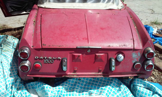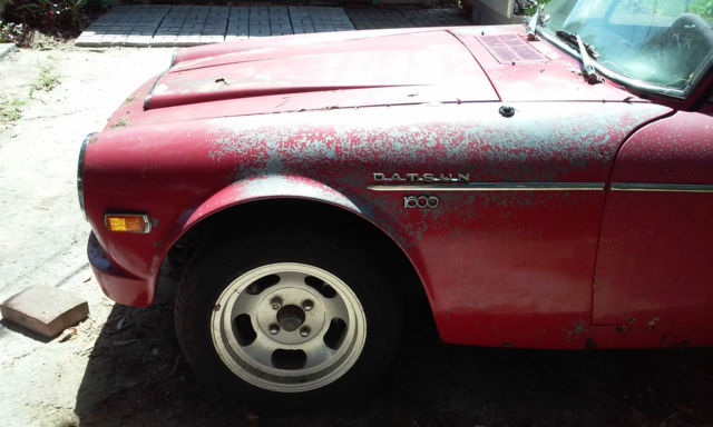 SWEET BARN FIND !!!! 1970 Datsun 1600....Car is complete but as all Datsuns of this era has major rust issues. This car is a complete ground up restoration candidate OR a fantastic parts car. Engine ran until points burnt. At that time it was sounding healthy and there was no smoke or leaks that I saw. Clutch and brake cylinders inoperative...did not try to fill and bleed...so who knows?? Car will need to be flat bed towed or dolly towed. Buyer responsible for shipping/pick up...however I can store the car in my yard here for up to a month or so after winning bidder pays. Has two sets of alloy wheels with the car. Have a nice rear bumper that is not shown in the pics...there is NO frt bumper. Any questions please email BEFORE bidding. Thanks and happy bidding...just think how cool you will look tolling around in this ride. The LAST pic is how this car COULD look it is NOT this car. |