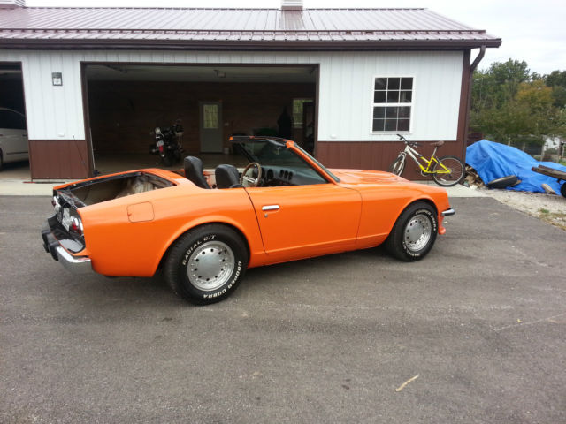 You can see from the pics that this is not your ordinary 280z. Everyone who sees this carloves it. When I purchased it the previous owner had already customized it into a convertible.I liked the lines but did not like the look or functionof the custom fabricated top so I decided to convert the car into a classic roadster look. I've done most of the work myself and wanted to be able to continue to drive the car while I was doing little pieces of work at a time. I started from the bottom and worked my way up. To stiffen up the chassis I ordered and welded in new steel Bad Dog frame rails. The suspension and braking have all been refurbished including all new = master cylinder flushed brakelineswith new fluid, rethane bushings, okico springs, ear struts, ront shocks, all joints, tc., nd new Cooper Radial G/T tires (about 1,000 miles on them) I even replaced the dreaded spindle pins! On to the drive train... New = battery, as tank, xhaust and magnaflow performance muffler, uel pump, uel pressure regulator, uel filter, ebuilt dual weber carbs, ertronix electronic ignition and flamethrower coil, parkplug wires, hermostat, lutch master and slave cylinder.Flushed and filled transmission and diff with all new Red Linefluids. I'm probably forgetting some things but that's what I can remember. I then moved to the interior and stripped out all the old carpet and sound deadeninggunk and that's as far as I got whenchild number 6 arrived. Other than installing a new Grant Walnut Steering wheel I haven't had any time to do anymore work on thecar. My intentions were torust and sound proof the interior (I have purchased Rust Bullet coatingand Eastwood Thermo-coustic material for the job and they will come with the car). I also purchased a new black carpet kit made for the 280z, t will come with the car. You will notice from the pics that I removed the center console and the trunk lid while I was working on stripping the car interior. I will replacethose before the car ispicked up/shipped if thebuyerwould like or just package them up whichever you prefer. When I finished the interior I was planning to strip the body down to bare metal and prep and prime it to be repainted (it looks sweet from 20 feet away as is), henhave a custom Tonneau cover made with the center zipperwhich would really finalize the look of the roadster! I probably have some other new parts that are not coming to mind but everything that I have will come with the car to the new owner. You may have noticed a yellow 280z Roadster listed on ebay currently for $18,500. My reserve is a fraction of that amount and I'm sure even if you had a shop finish everything off for anotherfew thousand dollars you would have a car thatwould beaverysweet ride for half that amount. Please shoot me any additional questions you have and good luck bidding. |