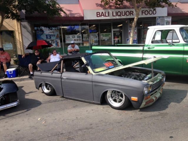 Your looking at one of the funnest cars you'll ever drive. My custom built Datsun 521. The builder cut this truck and put it on a 510 frame with roadster front end. The brakes from a skyline, the motor/tranny from a 240sx(KA24de w/89k) with all new wiring and harness, seats from an Audi, and custom built roll cage. He then went ahead and put on XXR wheels, air bag suspension, and sound system. This car does need new front air bags, clutch slave cylinder replaced(which I'll send for free w/new line), new alternator or battery, and brake and clutch lines bled. Tires 8/10 Brakes 6/10 I really had big plans for this, but I was a little over optimistic about my abilities on fixing her up. Need to sell ASAP, trying to move to San Diego. Thanks Guys, Feel free to message me for more pics or answers |