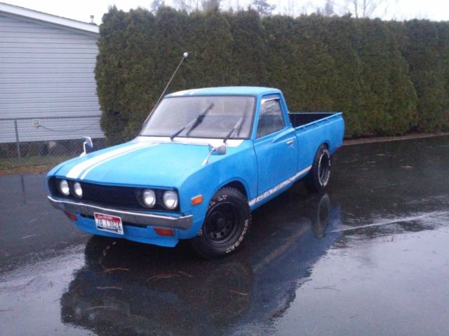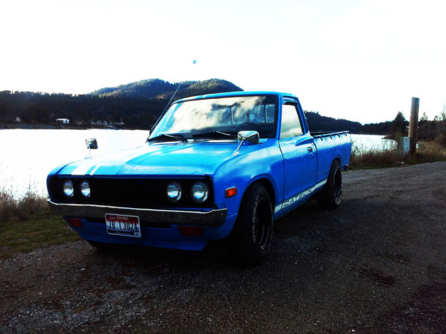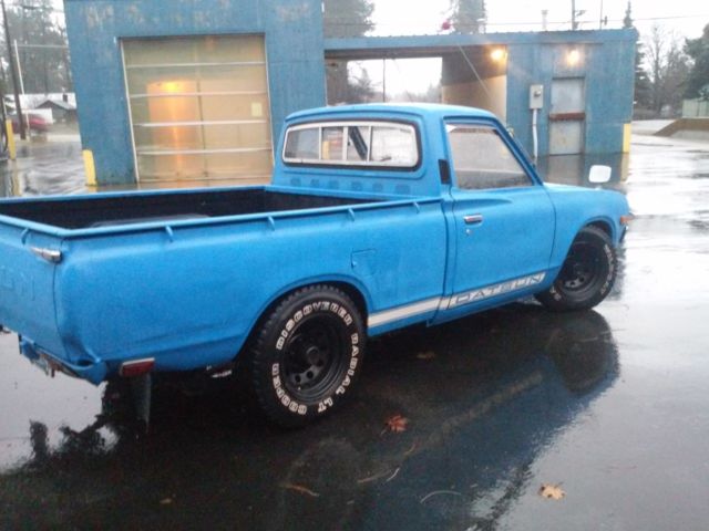 For is my 1973 Dastun 620 pickupIt has been lowered on 3" blocks in the rear, and the torsion bars have been reindexed, and adjusted in the front.New upper control arm bushings, newer starter, weber carb, new cap and rotor, new wires,new pkugs, new carrier bearing and support bushing,New slave cylinder, New heater core.Great tires,custom fender mirrors, seat has been recovered,sticker bomb head liner, newer speakers, spray bed liner. odo reads just under 15k. All lights,signals,heater works. This little truck runs awesome! Handles like a race car and is a blast to drive. Great gas mileage. Clean clear title in my name.These trucks have a HUGE collector following and are fetching big money. Its a great start to an awesome little truck.
