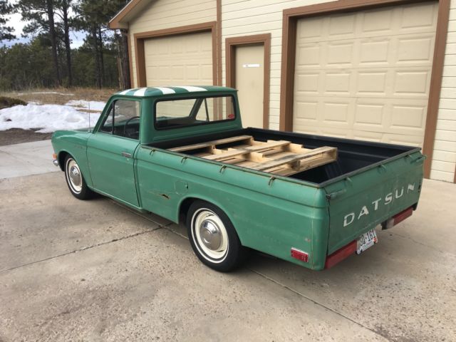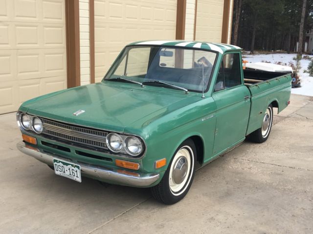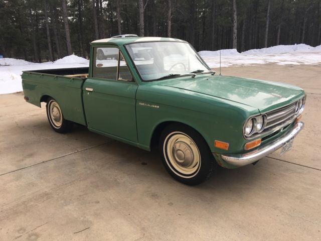 Very Rare and Very Very Cool Datsun 521 PickUp. It's 45 years old and cooler than ever. I always get thumbs up and complements when I take it for a drive. These are quite hard to find in this condition. It shows no sign of any accidents. This 1972 has the numbers matching L16 (1600cc) engine and 4 speed transmission. The factory radiator was just fully refurbished and is installed with fresh antifreeze and new radiator hoses. The interior has been redone in a cool retro blue/green plaid and the door and kick panels match. This truck runs and drives. The brakes are 4 wheel drums and the pedal is soft. The clutch is working fine and the transmission shifts good. All of the lights are in working condition. The Factory AM Radio works too! There is some normal rust for a vehicle of this age, but the rockers and floors are solid. The wheels and the Japanese Rising Sun painted on the roof are matching Antique White in color. It has the factory vinyl floor and the RARE Factory windshield washer bag too! This truck looks very cool in person and is a vintage head turner. It is being sold As-Is Where-Is. I will not ship. Buyer is responsible for shipping. I can store the truck for up to 45 days at no additional charge. A non-refundable Paypal deposit of $500 is due within 24 hours of end of auction. The balance is due within 7 days from end of auction. |