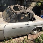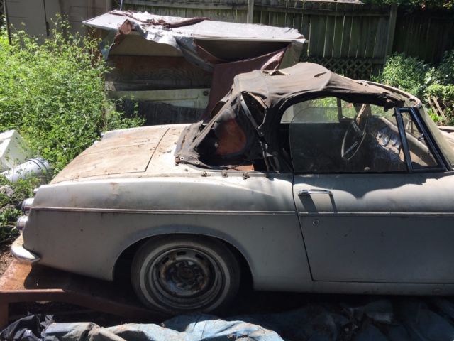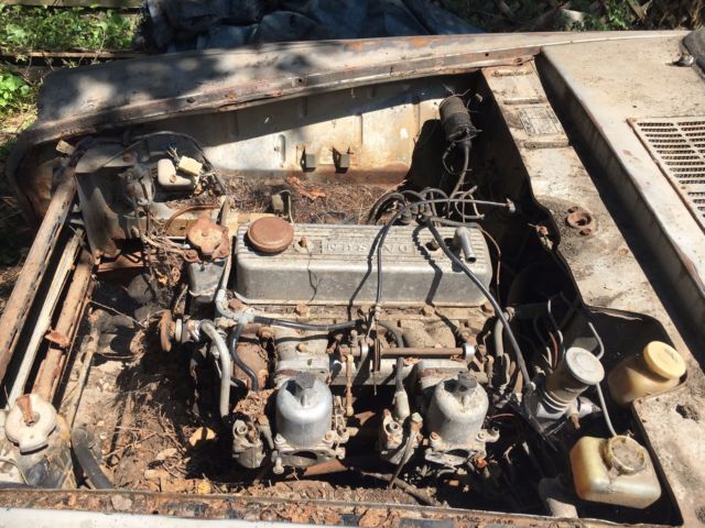 Purchased for restoration, but sitting for years. Body panels are solid. Glass is all good. Trunk, tail lights, and badges are good. Convertible frame may be good. Assume that motor doesn't turn over, though it did when parked. Hood (bonnet) is missing. Clear title. Pick it up in Leavenworth, KS.Good luck bidding! I hope someone can make all or part of her useful. On Aug-27-17 at 08:32:25 PDT, seller added the following information: To answer a couple of questions: yes, there is significant rust underneath. Please arrange to look it over before bidding if you plan on restoring her. The value here is in the doors, windows, body panels, trunk lid, rear lights and bumper, badges, etc...as these parts are difficult to find. I'm assuming that someone will buy this to part it out and double their money, or use it to restore another roadster with less rust. The seats are original, but I'll have to check to see if the head rests are still there.
