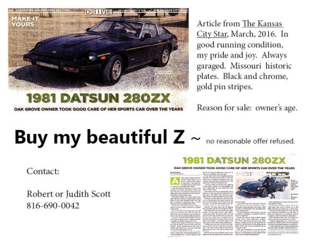 Condition: My "baby." Very good hatchback, always maintained, undercoated, always garaged. No accidents, no floods. Missouri Historical plates. Non-smoker, original leather and carpet interior, interior rear quarter panel reupholstered 2016 (original upholstery kept and can be provided upon request. New battery 2014, air conditioner checked, rebuilt condenser installed 2015, original condenser kept and can be provided. Hatchback gasket replaced 2016. Front passenger fender replaced 1990s, hood replaced and vehicle repainted 2014, original factory pin striping followed. Insurance, but no current original factory warranty. Undercarriage checked and approved by welder in 2016. History: Purchased used at 6 months from dealer in 1981. Have owned continually, with a legal transfer to adult daughter for storage in Rhode Island temporarily until able to bring to Kansas in 2013.Features: Subject of Kansas City Star article on classic cars in 2016 - see pictures. Fun to drive! Shipping and Payment: Pick-up only. Although very driveable would suggest trailering for long distances because of unknown road surface conditions. $500 down through PayPal, cash balance to be deposited in my bank which is nearby. Missouri law requires title to be transferred within 30 days. |