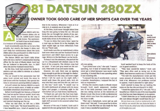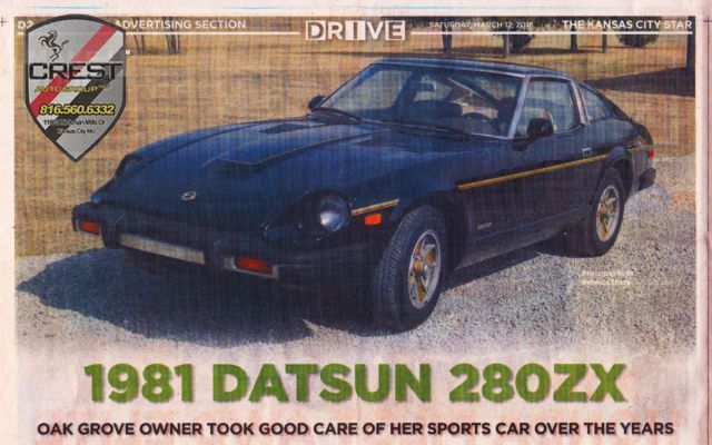 Seller Description 1981 Datsun 280ZX, same owner since 1982! This car is in great shape inside and out! Everything on the car works, and does so well with exception of the Radio, it is an aftermarket unit and we do not have the original radio unfortunately. The car is in exceptional shape for the age of the car, the previous owner clearly had a love for the car that you can read about in the write that featured the previous owner and car from the KC Star (an original from the paper comes with the car) The car has at some point had a re-spray, and it was a top notch job! Car does appear to have all its original body panels and it is also RUST FREE! The car drives out like a dream and has a very solid clutch, trans shifts out smooth as well!! This 280ZX can be set apart from the crown with its Black on Gold exterior, and its beautiful tan interior. Please feel free to asks questions, but remember this is a used car, so don't expect it to be new, for the year and mileage it's probably the nicest one available right now, but it was only new once! Call or Email with questions or to check availability! Vehicles shown by appointment only! 816-765-9000 sales@crestautogroup.netVehicle Options