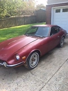 72 Datsun 240z 4 speed. This car runs good I did a full tuneup on the engine. It has new cap, rotor, points, coil, condensor, resistor, plugs and wires. It has new fuel pump, fuel filter, and both carbs rebuilt. I also replaced the water pump, hoses, thermostat, and belt along with new oil and filter. I drained the fuel tank and rinsed it but I haven't removed it. The brakes will need to be gone through I have a new power brake booster, master cylinder, and a rebuild kit for the rear wheel cylinders. I have a new clutch slave cylinder and clutch master cylinder. The body is in rough shape but can be restored. I have the registration for this car dating back to 1974. It will need floor pans, trunk pan, and probably rockers, the rest I believe can be made and welded into place. The mileage is more than 50,000 I assume. The title says 56,812. The lady i bought it from owned it since 1979.