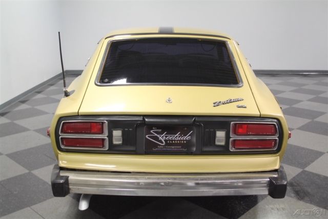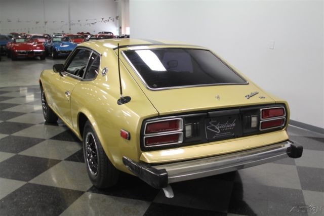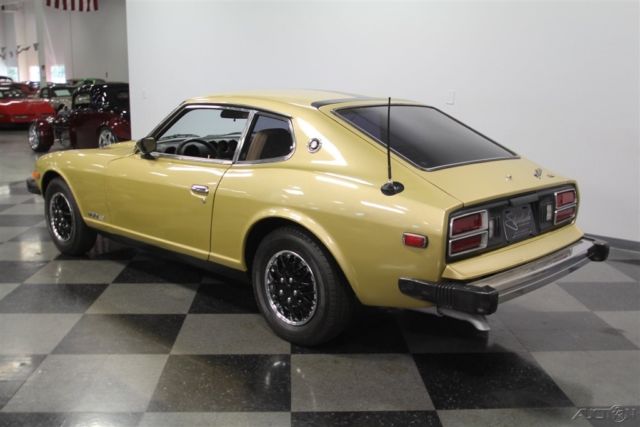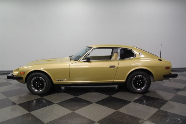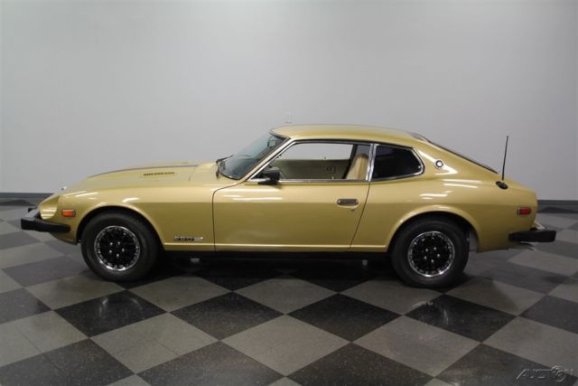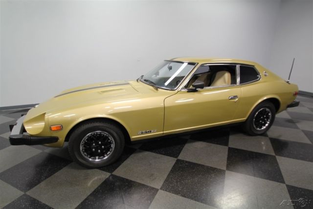 You're looking at the last year for the original Z-car. So this 1978 Datsun 280Z 2+2 has the iconic design we all love and all the best updates learned over this model's run. The Z cars defined 1970s motoring in America, and that's best represented in one color: Gold Metallic. It's that perfect hue that seemed as disco-friendly as the leisure suit forty years ago, and it's still an attention getter today. But really the reason why the color still works so well is because the original color was given a professional respray later in life to keep this precious metal hue glowing. Plus, this has a nice aggressive streak with the black hood stripe that continues up the roof and ends across the hatch. This styling element coordinates nicely with the bumper caps, tinted windows, and wheel covers to give this one a full black and gold coordinated appeal. More than just this cool look, there's a fundamental desire that comes from the first of the great Japanese sports cars. The design borrowed the best elements from around the world with the long front end, vented hood, sleek profile, and an overall timeless appeal that is becoming more and more appreciated by the day. This is believed to be under the care of one family for most of its life, and so the interior is highly original. These 2+2s were a handy addition where the rear seats could hold others in a pinch, and they were especially nice to fold down a get extra cargo space for long trips. In fact, this is set up to be a nice grand touring machine with high-back bucket seats, armrest center console, and AM/FM/cassette stereo. Plus, we all love the look of the gauges set into twin round pods for speedometer and tachometer. Auxiliary readouts are placed on a trio of dials set high on the specially contoured dash. This is a look that became so iconic, it was used for the modern Z as part of its retro-style. Under the hood is a correct 2.8-liter inline six. This was the largest of the original Z-series, and so you'll love the extra power. And fuel-injection just increases the desirability and drivability of these classic Z-cars. This motor just seems to be tidier than most with a handsome paint package, which reinforces the idea of a cherished single-family coupe. Out on the road, you really feel how a this is a great grand touring comfortable classic with features like the three-speed automatic transmission, power steering, front disc brakes, and the fully independent suspension. This is a well-coordinated classic in a rapidly appreciating market. So don't look too long at the last of the great Z-cars, or it might be gone. Call now!