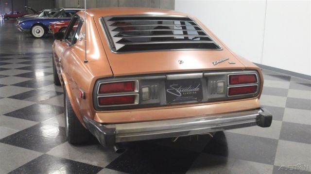 The Datsun Z cars put Japan on the performance car map, and this 1977 Datsun 280Z 2+2 tells you all you need to know about why these are such special vehicles. With an unusual copper metallic paint job, a beautifully preserved interior, and long-term ownership history, this is exactly the kind of car that you can enjoy today and let it appreciate tomorrow. The long nose styling of the Z car never seems to go out of fashion, and when combined with a sophisticated and elegant color like this, it creates a unique blend of performance and luxury that was found on cars like the Jaguar E-Type. The paint is original, and with that in mind it's in fantastic shape. Not perfect, mind you, but for being 40 years old, it's pretty impressive with a soft shine that is exactly what you'd expect. Typical of the Japanese, the fit and alignment of the body panels are excellent, and for a car from the '70s, this one fits together amazingly well. Details like the chrome bumpers are in original condition, and their shiny surface suggests that this car has always been properly maintained. Badges, the front grille, the rear valence with distinctive Z taillights, all of it looks far younger than the car's age would suggest. The two-tone 2+2 interior gives the Z a lot more space, and while you won't want to put two adults in back for a cross-country trip, it greatly expanded the Z's practicality. The front buckets are well preserved, with no cracks or splits, and showing virtually zero wear even on the lighter surfaces. With its distinctive dashboard design, with speedo and tach in front of the driver and three auxiliary gauges mounted up high in the center, the Z's interior has been the prototype for all Japanese sports cars for decades. In this car, the dash pad, the door panels, and even the rear hatch area are exemplary, showing no signs of sun damage which is so common on these cars. A/C (needs to be serviced) and an AM/FM/cassette stereo are included, so there's no reason not to get in and have fun. Power comes from an upgraded 2.8 liter inline-six, which makes wonderful sounds akin to the great British roadsters of yore, not to mention all that turbine-smooth torque. The 280Z uses fuel injection, which looks complicated but is extremely reliable and delivers improved performance and economy. Showing signs of proper maintenance throughout its life, this Z fires up the first time every time and pulls cleanly, with a long list of recent maintenance items including the fuel pump, fuel injectors, hoses, clutch master and slave cylinder, a new muffler, and a re-sealed gas tank. The 4-speed manual transmission is wonderful to row through the gears, making this Z a fantastic car to run down your favorite twisty road. The all-independent suspension is agile, and none of its handling prowess is diminished by the added length of the 2+2 body. The original alloys are in very good condition, with no curb rash or corrosion, and they wear a set of 195/60/14 performance radials. In the same family since 1980, this very well preserved survivor is an affordable way to enjoy a vintage sports car that's also surprisingly practical. The Z's day is fast approaching, and clean examples like this one will continue to be in demand. Call today!