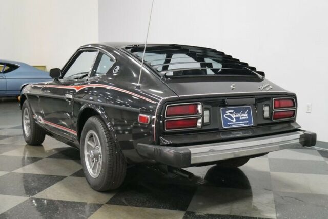 This beautiful 1978 Datsun 280Z Black Pearl Edition represents the best of the 2-seat Z-cars that totally transformed the automotive landscape in the 1970s. As the latest models prove, the Z will always have a place in our garages and in our hearts, and this early 280Z is a fantastic way to enjoy the ride. Looking at the shape, it's clear that there's a little bit of E-Type Jag in there, maybe a hint of Corvette, and... plenty of MG, too. Fast, light, agile, and affordable, even today, this Z is a delight. It's also the recipient of a fairly comprehensive restoration, with nice paint and trim that gave the 35-year-old sports car a brand new look. Limited edition cars like the Black Pearl were often put away as sunny-day drivers, and as a result, this one shows none of the bumps and bruises of the daily grind and it certainly appears that it lived most of its life someplace warm and dry. Chrome was going out of fashion in 1978, but there are still a few bright pieces, including both bumpers and the stainless around the windows, all of which remains in very good shape. Even things like the rubber bumper overriders are supple and undamaged by UV rays, suggesting that this car has led a very sheltered existence. The Black Pearl also received special red and silver graphics that were faithfully replaced when the car was repainted a few years ago. Give it a quick cut and buff and this car will look like a million bucks! One of the Z-car's biggest successes is the interior, which is both sporting and functional. The black bucket seats were designed by guys who knew the car would be used to its potential, so they have thicker bolsters than most, and the pleated upholstery looks quite racy. Of course, all of this remains in great condition, showing only very minor signs of use since the restoration. The dash is full of easy-to-read instruments, each housed in its own pod, including a row of auxiliary gauges in the center, a look that is still evident today in the latest Nissan GT-R. These cars were top-of-the-line machines by 1978, and this one comes with factory A/C, an automatic transmission, and an updated Sony AM/FM/CD stereo. There's a positively massive trunk area under the rear hatch, and the carpets show almost no wear or fading, surely thanks to the window slats out back. The L28E 2.8 liter inline-six is a fantastic motor. Torquey, yet eager to rev, it was enlarged to better suit American driving tastes, as well as to make the automatic transmission a reality. It still has that same baritone wail that epitomizes big-horsepower inline-sixes, and because it's a Nissan, it's also reliable and smooth. The engine bay is as clean as the rest of the car, and that tangle of hoses is how the factory did it, but don't worry, it has all been regularly serviced and is in excellent running condition with lots of new parts. It's quite clean underneath, showing proper care and maintenance and the rear half of the exhaust system is fairly recent. Heck, you can still see all the markings on the suspension components that shows they were properly torqued! The automatic transmission shifts as it should, and the handsome 4-spoke alloy wheels wear 195/70/14 blackwall radials. Today, as when it was new, this 280Z is a lot of performance for the money. It's also rare, with estimates suggesting fewer than 1500 Black Pearl versions were built. Call today!
