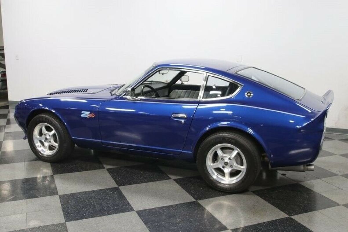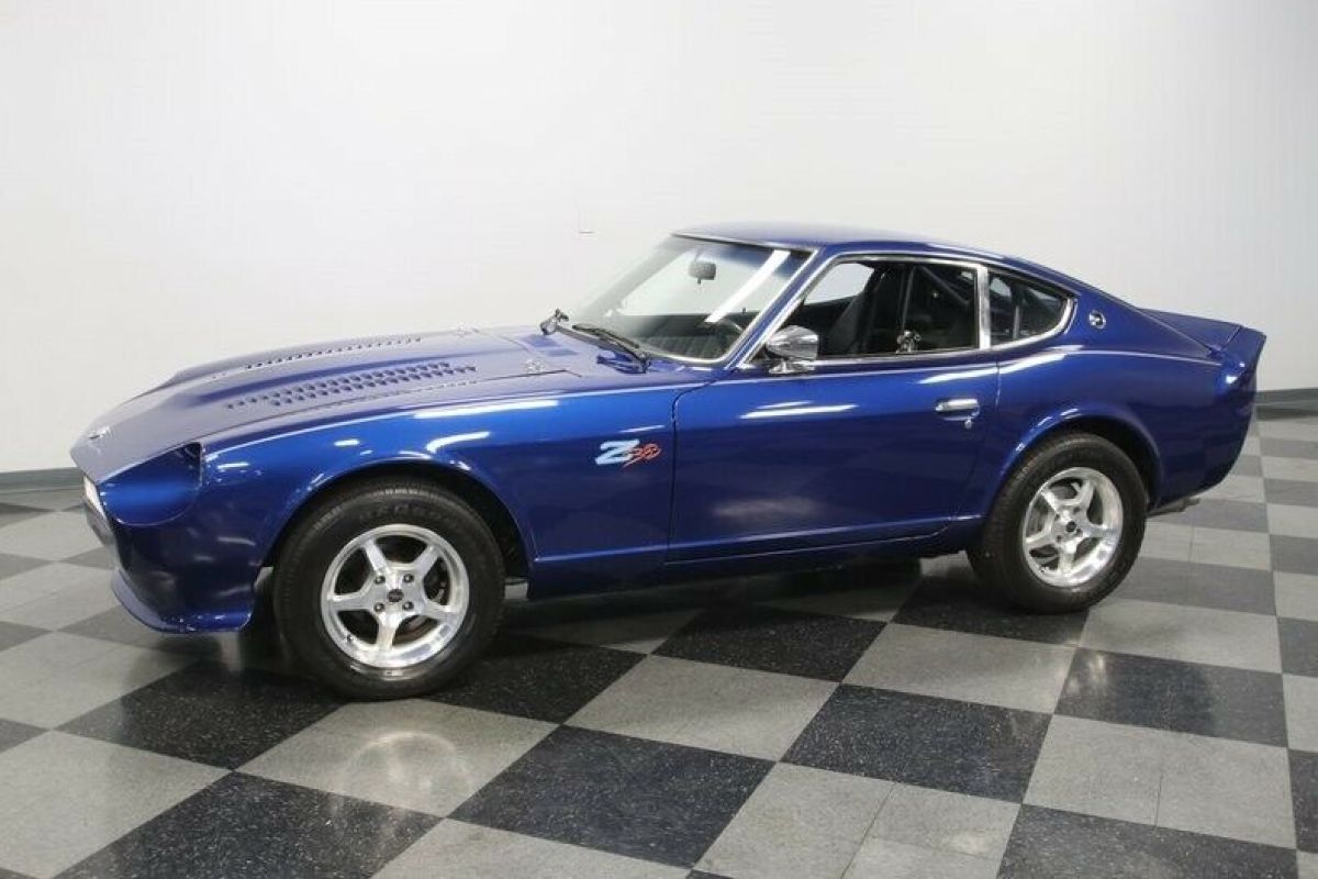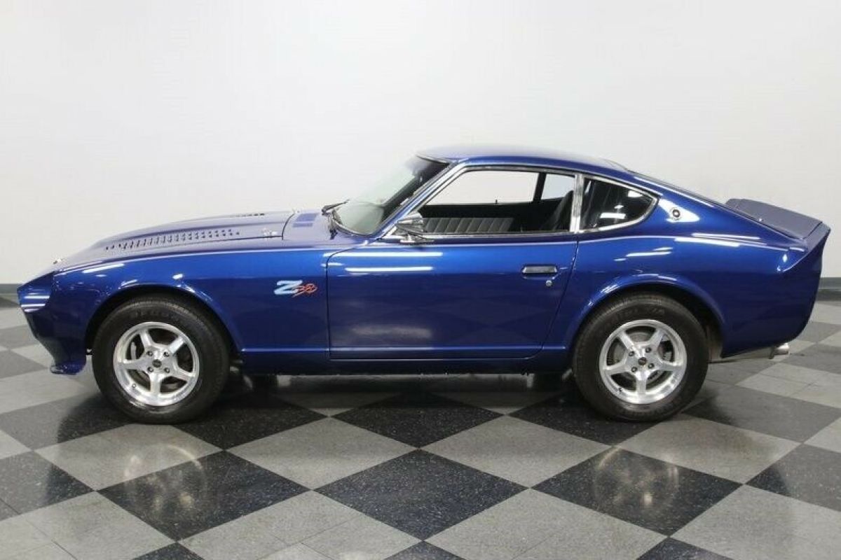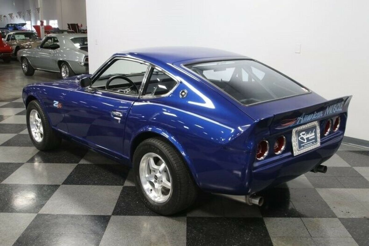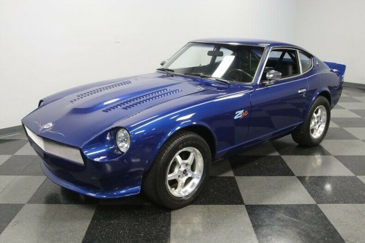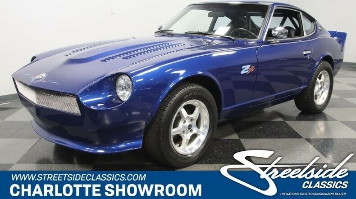 The 1977 Datsun 280Z is a cool and appreciating Japanese classic. But this one also adds a ton of custom attitude with a full Pro Street upgrade that includes performance-built 383 stroker V8, upgraded powertrain, custom interior, and a sleek look that instantly announces this one is something extra special. The Electric Blue with Stardust metallic element loves to radiate in the sunshine and draw extra attention to this special coupe. But that's far from the only custom touch. This has a sporty and sleek front end with a custom bumper, bright mesh grille, and louvered hood. Plus, the clear headlights with paint-matching blue-dot center is a nice detail. There's a full custom graphics package with full-length pinstripes, custom pinstriping around the Datsun badge up front, and a callout on the side proudly announcing the upgrade in power. Not only will the full-width rear spoiler remind you of a Camaro Z/28, but also so will the Camaro's taillight package that was expertly integrated. It's no wonder the custom pinstriping on the rear proudly announces this has American Muscle. Just like the exterior, the interior is quite custom, and it goes for the bold. The silver pinstripe outside gets you ready for the custom silver door panels and dash. This has all the right performance-ready upgrades, like the racing bucket seats, RCI five-point harnesses, and rear safety cage w/fire extinguisher. You have a proper B&M ratchet shifter, and the Grant GT sports steering wheel is on a tilt column so you can get a clear view to the dash full of AutoMeter gauges. There are provisions for a stereo system controlled through a pop-up LCD screen for the AM/FM/CD/XM stereo w/aux input. But really, we know your favorite soundtrack begins under the hood. There's nothing Japanese about the engine bay. It has plenty of American style flair on the bright and smooth inner walls, and they funnel all your attention to the V8 in the middle. This is a 383 cubic-inch stroker motor that's built with go-fast goodies like aluminum heads, a four-barrel carburetor, an Edelbrock intake, and headers that add power wile contributing to the rumble of the dual exhaust. And this ultra-tidy engine bay also reveals nice supporting components, like the MSD ignition/distributor and aluminum radiator w/electric fan. The motor is said to produce 451 horsepower, and the TH350 three-speed automatic transmission is a stout unit built for that kind of power. You can even shift it yourself for the ideal powerband on demand. This has been upgraded to the beefier R200 rear end to confidently deliver power to the rear wheels. The reason why you use a Z-car for an upgrade like this is because you get to take full advantage of its sharp fully-independent suspension. Plus, there are upgrades like the four-wheel power disc brakes and 15-inch ROH alloys that can hold modern performance tires. Distinct, powerful, and absolutely cool. You know you want this Pro Street Z. So don't let this deal slip away. Call now! |