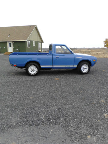 | 1976 Datsun 620 pickup. These pickups are becoming increasingly difficult to find. Most remaining examples have rusted to death or have been cut-up. lowered. and modified. This is a rare 83. 00 original miler with an automatic transmission. I purchased this vehicle from the grandson of the original owner who has long since passed on. the truck was purchased new at a local Datsun dealer. and according to the grandson had never left the county where we reside. Our auto-body person was on the fence as to whether or not to paint it. The body was in good shape except for where the drivers door meets the fender. Apparently it is quite common for the door to blow open in the wind and crinkle the door edge and the fender edge. It was decided to go ahead and replace the fender. repair the door and re-paint the whole vehicle to correct one coat factory color. The only rust found was surface rust in the exterior defroster vent under the louvers at the bottom of the windshield which was taken apart. repaired. and re-painted. nbsp; the original upholstery was torn. and the springs were wore out so the springs were repaired and new upholstery was done. the wheels and tires are new. but we did keep the ones that were on it and will include them if you would like them. The original spare tire and wheel are there and were taken apart. cleaned. sandblasted. and re-painted the original "argent" color. As some of you may remember. everything in the 70's was undercoated. and this truck was no exception. The original undercoating was flaked and wore out. so we had it professionally re-undercoated. Believe it or not. the original owners manual. vinyl tool bag tools. and jack are still in their proper places. The truck was tuned up serviced and runs great. although it is not a speed demon by any stretch of the imagination. but is a ton of fun to drive. and definitely turns heads. This truck was also featured in Hemmings Motor News "Find of the Day". December 24. 2014. check it out. We have recently moved the truck to Central Washington where it is a much drier climate than here on the coast and are storing it in a garage there where it is not subject to the moist air that we have here on the coast. Please contact us with ANY questions that you may have. and we will answer them to our best possible knowledge. I do know that the AM radio does not work. and our mechanic suggested that there is a fuse behind it that is very difficult to get at and may be the problem. I also know that there is a plastic bottle in the engine compartment that is either the windshield washer or the radiator overflow canister that should be replaced for aesthetic reasons. Please look closely at all of the pictures. and ask questions!! |