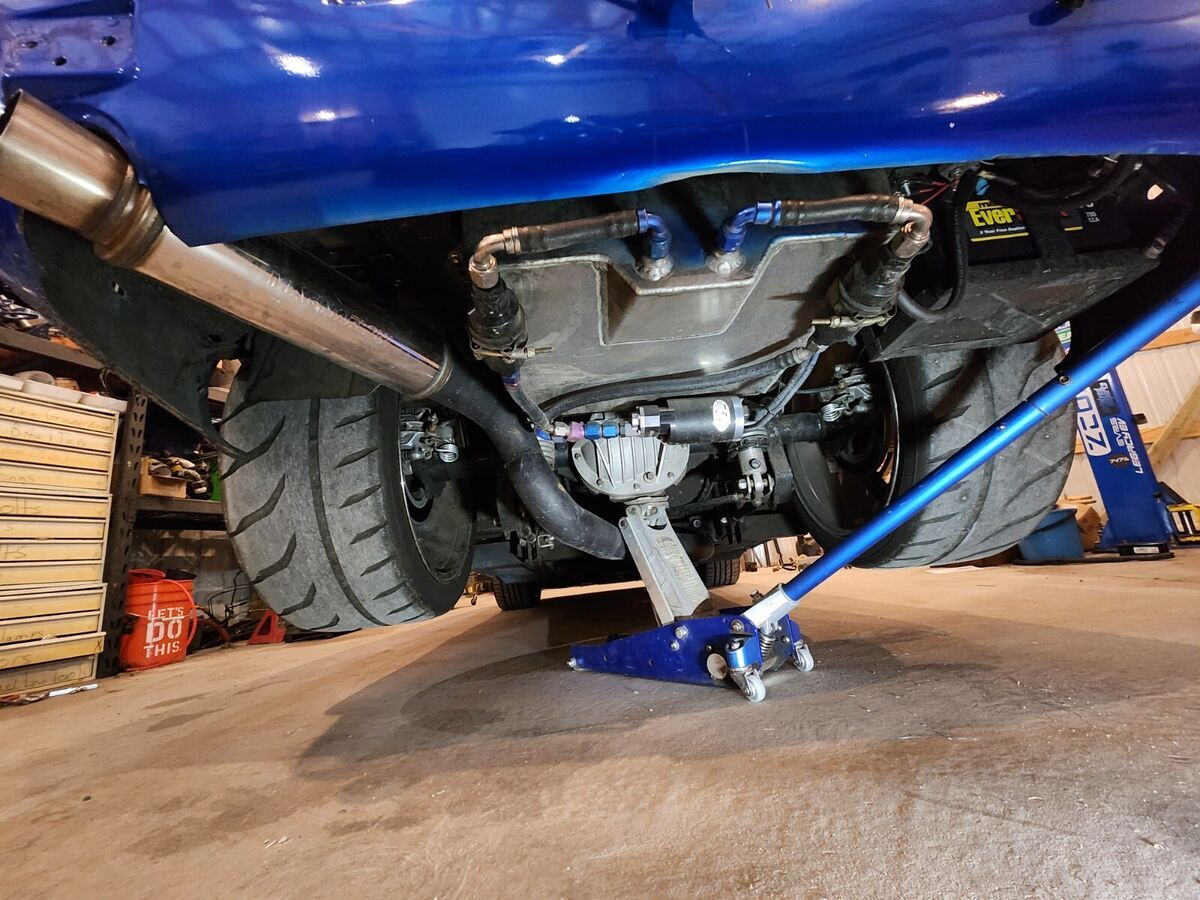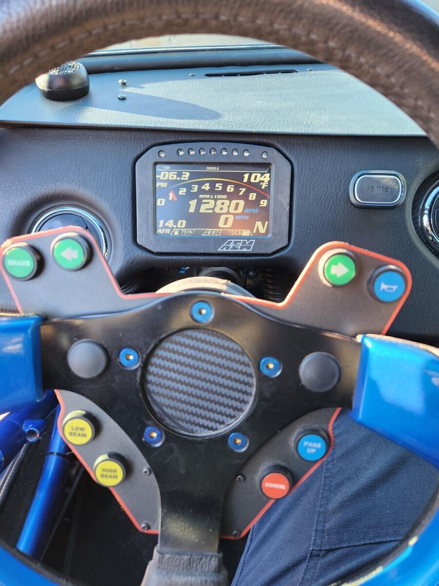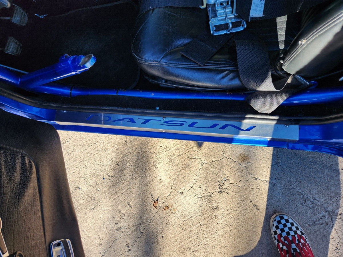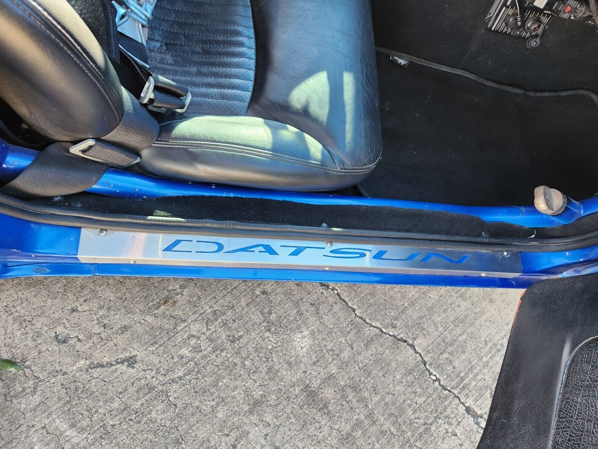 1973 Datsun 240z Clean Title 900 Crank HP (760whp) Adjustable via dash switch 8.50 NHRA Certified Chassis in 2024 Motor: 2JZGTE VVTI 1k miles on motor after refresh with new bearings and rings, BC 276 cams with BC valve springs with rebuilt head, Big single turbo kit with BorgWarner s369 turbo, Precision Wastegate (10psi) 3port boost solenoid (see Tech below). Lots of powder coated parts – Valve covers, Intake manifold, intercooler piping, Compressor Housing. The turbine and downpipe are Cerakoted. 4 inch down pipe leads to 3inch exhaust to Magnaflow Muffler. 4 Inch intercooler with very large radiator. Cooling is great on this car. Fuel system: 2150cc injectors, flex fuel kit, Magnafuel 750 pump, twin large serviceable filters, Fuel lab regulator, 10 gallon fuel cell under rear trunk floor. Transmission: 6spd manual transmission 07/08 350z new from Nissan (cd00A/9) colins adapters 2jztocd009 with stg5 Collins clutch and Collins short shifter kit. Wheels: BBS style 18X8.5 inch wheels front with Toyo Proxes 235/40R18 with 20x10 inch rims in rear on Toyo 888r 285/35R20 (street) and rear Weld Draglite 15x10 on Mickey Thompson 325/50R/15 ET Street R tires Exterior: Car was painted in 2015 in C7 corvette color “Blue my mind. Msa type1 front lip, aluminum front splitter, Ztrix 3 piece rear spoiler, shaved side marker lights, front tow hook, custom air paneling to front radiator intercooler cores, led headlights with turn signals integrated, custom led fitted in rear tail lights in stock housing. Interior: Custom dash and center console are handmade and wrapped in leather (see photos), Skillard Datsun inner trunk lid beauty panel, Skillard Datsun door sill plates, C5 Z06 seats, Vintage Air Mini Gen2 A/c, paint matched steering wheel. Center of the dash is the mode switch so you can pick how wild you want your ride to be. Leather shift boot with genuine R34 GTR Shift nob. Suspension & brakes: The car is back halved with large tubs out back and new frame rails from the firewall back that are integrated into the roll cage. 4 link rear suspension with ford 8.8 solid rear with 33 spline moser axels, Spool with 3.73 gears. QA1 rear coil overs, Wilsons driveshaft. Techno Toy Tuning front coil overs. Silvermine motor 13inch big break kit 4 piston Wilwood calipers front, Ford Mustang rear disc brakes and calipers Technology: AEM Infinity engine management with oil pressure, lean, and over boost protection, Boost by (gear/ethanol/mode switch/traction). Aem CD5 dash to watch all the vitals. Wheel speed sensor front and drive shaft speed rear for traction control (also mapped of mode switch). Drive By wire with Tarkk adapter and Bosch Throttle body (torque mapped off mode switch). Cartek wireless steering wheel 8 button system which controls: headlights, turn signals, cd5 dash controls, line lock. Push start keyless entry system with 2 fobs but one physical key. Key is to trunk lid. Door locks are blanked out. Sound system: Kenwood double din touch screen head unit, Bluetooth, Android Auto compatible. Alpine speakers front and rear. Back up camera active with reverse lights. Usb 3.0 charger in center console. Safety equipment: 8.50 cage certified to 2026, window net, 5 point harnesses, parachute out back with release handle near rear view mirror, removeable swing out bars for easier accessibility, driveshaft loop, kill switch on back of car. battery mounted under right rear truck floor which is removable with dzus fasteners. Charge lugs in original gas door location. Awards: Elite Tuner Elite of Show 2023, Disclaimer: This car has run 9.48 at 151 back when it had a powerglide automatic transmission and similar power. It is a lot more fun and a drivers car now then dedicated race car. The intercooler piping was done when the car was on skinnies which are no longer available so the right turn radius is half of the full left turn radius. Paint is 9 years old and It is mostly in good shape with a couple blemishes on the roof, hood and front right fender lip. Optionally available: Original 240z dash with dash cap. Loaded with Autometer Gauges. |
