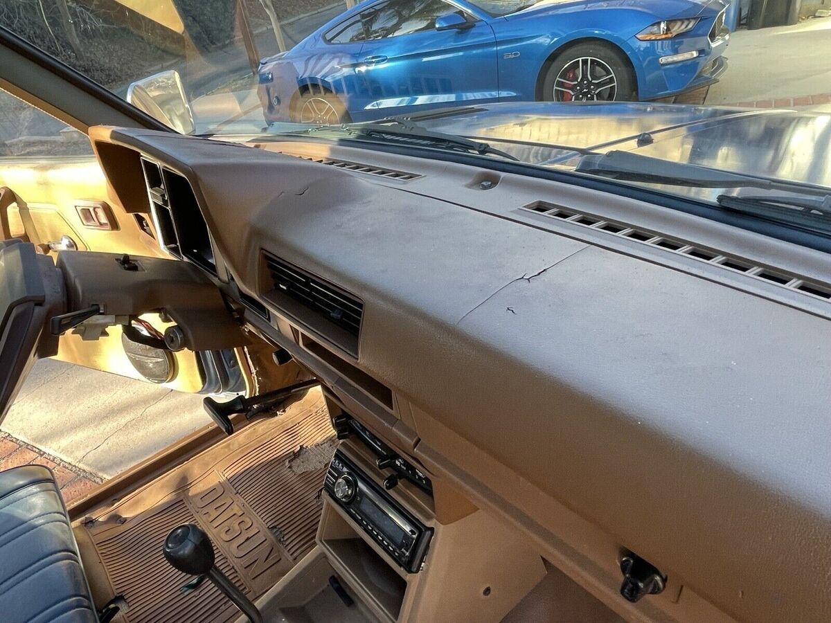 Super rare 1982, Datsun 720 diesel pick up truck Vehicle Details This truck is in very good condition for its age. It runs and drives as it should. The body is straight and the under body and frame are clean and rust free. The paint job is good from 8 feet away. I did not paint it, but it looks like it’s a single stage paint which would look a lot better if color sanded. The paint is not as shiny as it should be and has orange peel. It looks like the cab may have been removed from the frame to paint the floors underneath. See pictures. The engine runs very well with no strange noises, and it does not smoke. The original brake vacuum pump that was connected at the back of the alternator has been removed and an electric vacuum pump has been added on the passenger wheel well. The electric pump is noisy, but runs intermittently only when needed. The transmission and clutch work as they should. All the lights horn and wipers work. This truck is not equipped with power steering. At low speed it is difficult to steer. This truck is not Equipped with air conditioning. The tires have good tread, but are over 10 years old. I would recommend replacing them. I do not know how old the spare tire is. The rear jump seats are missing and I do not have them. The plastic cover underneath the steering column is missing and I do not have it. The boot around the shifter is missing and I do not have it. This is a very clean very rare diesel truck that would be great for your weekend projects. There are some cracks on the dashboard top. The front ball joint rubber covers are shot. |
