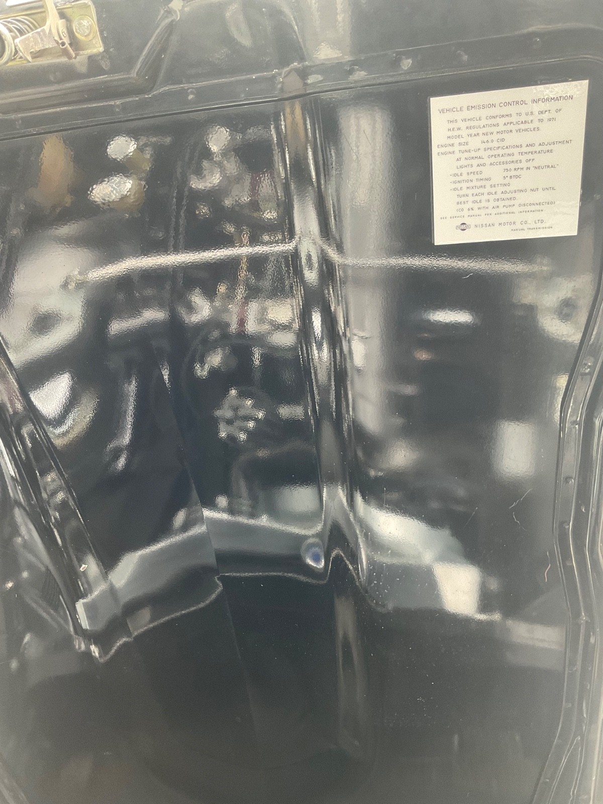 Purchased by my Dad in 1971, it sat covered in his garage till 2017 when I acquired the car. I have gone through this car extensively replacing, restoring and reconditioning each piece. Everything on this car has been touched. I chose not to paint the car as it was painted in early 2000, it has recently gone through extensive paint correction and ceramic coating at Clay’s Detailing in Gainesville, GA. When my Dad bought it in 1971 he had it painted black(see photo). The car currently has an original 50,867 miles on it. Engine is freshly rebuilt and runs very strong, specs are listed.There were so many parts gone through, I’m sure the list is much longer. The pictures show the attention to detail. Has the original spare tire, jack, chocks and tool kit. Original manual and sales brochures. Since I’ve owned the car it’s been stored in an air conditioned and heated garage. With so many engine parts ceramic coated there is no vapor-lock! The photo of the kid with the Datsun 620 is me, you can see the car in the background and in the other two photos. Engine L24-025205 Built by Tim McGovern- Z.I.P. Service in Bethlehem Ga. Isky Racing Cam 280zx intake/exhaust valves All stainless bolts New Reman’d starter New Electric Fuel pump New aluminum fuel pump block off plate New Aluminum Z timing cover New Alternator New fan clutch New oil pressure sending unit New Temperature Sending unit New Oil Temperature Sending unit New Nissan motor mounts New Nissan hoses New hose clamps New gaskets and seals New NGK plug wires New NGK R spark plugs New water pump (cast impeller) New K&N Air Filter New K&N oil Filter New Oil Pump New distributor cap New Pertronix ignition New Flame thrower II coil New Datsun Spirit Plug wire holders NOS Carb Spacers and Gaskets NOS Distributor Pedestal New Alternator Z therapy Hitachi SU 4 screw round top carbs w/ drain screw Billet Oil filler cap Billet brake fluid caps Billet clutch reservoir cap New Harmonic Balancer Original Fuel Tank boiled and sealed by Sims Radiator in Lawrenceville, GA. New Nissan fuel sending unit New Motorsport 6-1 ceramic coated header New Motorsport stainless exhaust New Zstory Polished Stainless twin pipe muffler New polished a/c compressor (not hooked up) New battery tray and hold downs New aluminum radiator, uses Hayes coolant New- All rubber hoses, rubber fuel lines and dual wire clamps New voltage regulator cover Transmission Original 4 speed NewClutch and Flywheel New clutch slave cylinder NOS Clutch Fork New throw out bearing New clutch fork rubber boot New gear shift bushings New gear shift boot New Reverse Sensor New Nissan Transmission Mount Insulator New Seals Suspension All suspension parts have been powdered black New Prothane bushings all suspension New Addco front and rear Sway bars New Addco front and rear strut braces New Koni Strut inserts F/R New Eibach lowered springs F/R Brakes Brake booster and (Tokico)master cylinder rebuilt by Harmon Classic Brakes in Canton, GA. NOS front (Tokico)calipers NOS front rotors NOS rear brake drums All New rear brake components New brake hoses and stainless inlet lines Exterior Extensive paint correction and ceramic coating New rubber door and hatch seals NOS door window swipes New tail lights from JDM-Car-Parts Original chrome bumpers New 16x7 Konig Rewind wheels New Hankook Ventura V2 205/55R16 tires All original glass New windshield rubber (not installed) with original stainless trim. New rubber gas tank filler flap Stainless Bolts, washers and nuts- entire car New fresh air duct set All New correct decals New engine inspection light cover New bumper rubber pads Interior Retro Sound Radio, sub and 4 speakers with kick plates. All new interior, seats with new foams, carpets and arm rests Original headliner Original dash (no cracks) Original door cards All original plastics All new rubber seals. NOS Luggage straps Lonely Driver Company drink holders NOS pedal pads NOS tool lid covers New glovebox New rear view mirror NOS passenger door pull handle New harness cover Powder Coated Parts Nissan Blue- Alternator Bracket A/C pulley Black- Air cleaner A/C Compressor Bracket Oil Pan Transmission Mount Lower Alternator Bracket Front and rear control arms Cerakote Titanium- (Ceramic) Nissan valve cover (rare) Cerakote Silver-(Ceramic) E46 Intakes Heat Shield Rear Engine/Transmission Plate Coolant inlet Thermostat housing outlet Thermostat housing neck Water pump pulley Timing Chain Cover A bin of various parts, original front valance, LH and RH side valances, shop manuals are included. I will include all receipts that I have for the car. |