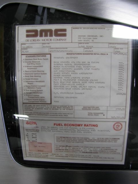 If this car is not exactly what you are looking for in a DeLorean, please contact us regarding other cars we may have in process or available. This 1981 DeLorean is being offered by DeLorean Motor Company Midwest. Excellent example of a well-cared for car with original bumper paint, seat leather, dash, binnacle, and carpet. Frame is also in excellent condition. Always stored indoors with no signs of sun damage. Early car with a unique Vin # (1111) Gas flap hood, dark wheels, Black Interior, Manual Transmission. 8,351 original miles. Well-kept car with a documented service history. Car is in excellent driving condition. Over $12,000 in Maintenance and repairs completed by DMC Midwest Highlights below from 6-2008 with 5,958 miles: Full 30k service O2 Sensor Alt and A/C belt Full tune up - Plugs, wire, cap and rotor Gear oil change A/C service Six strut kit, doors, hood and louver Wiper blades Full brake rebuild New brake pistons Machine rotors Brake master cylinder Rebuild of all 4 calipers New brake pads on all 4 corners Brake system bleed Full hose kit with radiator Stainless header bottle Front end reinforcement kit Cooling system flush Complete clutch hydraulics Clutch master Clutch slave Stainless braided clutch line New window motors on both Left and Right doors Replacement metal door handles on both doors Premium Relay update kit New Alternator New windshield washer pump Cleaning of all chassis grounds Replace both horns New oil pressure senders for gauge and light Complete headliner set on new fiberglass backings Tie Rod end boots Steering Column Bushing New tires on all 4 wheels Repairs to be completed before pick up: New Interstate battery Left armrest extension repair The car is drivable for test and transport. We are willing to work with buyers tomake arrangements for shipping anywhere in the world. We can offer discounted USenclosed transport via a nationally recognized carrier, or our own carrier within 400 miles of Illinois. Please contact DeLorean Motor Company Midwest at 815 459 6439 with any questions orfor additional details. |