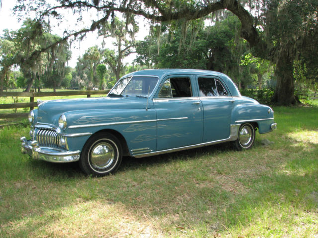 | 1950 DESOTO CUSTOM . FLUID DRIVE, INLINE FLATHEAD 6 CYL ENGINE, CONVERTED FROM 6V TO 12V SYSTEM, NEW TIRES, NEW HEADLINER INCLUDED THAT NEEDS TO BE INSTALLED. NO RUST, A GREAT DAILY DRIVER FOR MORE INFO CALL JIM AT 904-692-4626 |