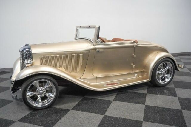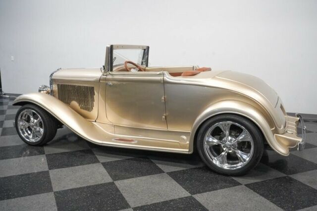 We seldom get to see a 1932 DeSoto SC, but you're going to love this one for far more than rarity. It's a custom street machine with a fuel-injected stroker V8, four-on-the-floor, a custom leather interior, and performance suspension with full air ride controls. Of course, this custom build also retains all the best pieces to make it a true classic, like a steel body and rumble seat. And there's less than 100 miles on the whole build! While 1932 may have been a great year to make a custom Ford, some of us know that the DeSoto is an even more interesting choice. They debuted a new race-inspired style in '32 that gave you a sleek and distinct rounded grille. And the custom two-piece front bumper makes sure everyone gets to really see this special piece. It kicks off the full custom treatment of this all-steel car. Vintage elements like the suicide doors and slotted hood sides meet with well-integrated upgrades like the crystal-clear headlights, frenched license plate, and LED taillights. The Billet Specialties alloys are staggered 18/20 inches front/rear for an aggressive stance. The full package shows a car that's vintage, sporty, and absolutely custom. So it seems only fitting that it borrows a shade of Champagne Gold metallic made famous by Chip Foose. Inside, this fresh build has a detailed leather interior. Supple and supportive bucket seats kick off a comfortable package that includes power seats, billet handles, an AM/FM stereo, alarm system, and a push-button start. The custom center console houses the controls for the full air ride suspension. There are even power windows and a removable soft top if you want to keep the weather out. But really, this one was meant to be open to the world. After all, even the iconic rumble seat is finished in leather to match the interior. And no matter how you chose to present this custom DeSoto, we know you're going to love driving it. The leather-wrapped steering wheel is on a tilt column, and the Hurst shifter is where you want your right hand to be. The Classic Industries gauges have a jewel-like quality, and these readouts dominate the dash so well that they are angled towards you. Under the hood is a terrific powerhouse. The bow tie logo on the valve covers and Heartbeat motto on the air topper are dead gateways to stout small block power. This is a 383 cubic-inch stroker V8 that has been upgraded with aluminum heads, an Edelbrock Performer aluminum intake, and shorty headers. It's topped off with an MSD fuel-injection system that you control from the panel on the interior. You'll also spot the right supporting components, like the MSD ignition and an aluminum radiator w/electric fan. Make sure you check out the undercarriage photos, too. Not only will you see a tidy presentation and a painted frame, but also great driver-oriented details. There's a Heidts tubular A-arm front end, four-link rear, and the full Accuair suspension that lets you dial-in your ideal stance. Plus, there's true control over it all with the four-speed manual transmission and four-wheel disc brakes. Here's a complete and stunning show car that's also a solid driver. But no matter if you want to win awards or enjoy the backroads, you know you need to hurry to take home something this unique. Call today!!! |