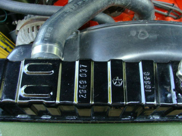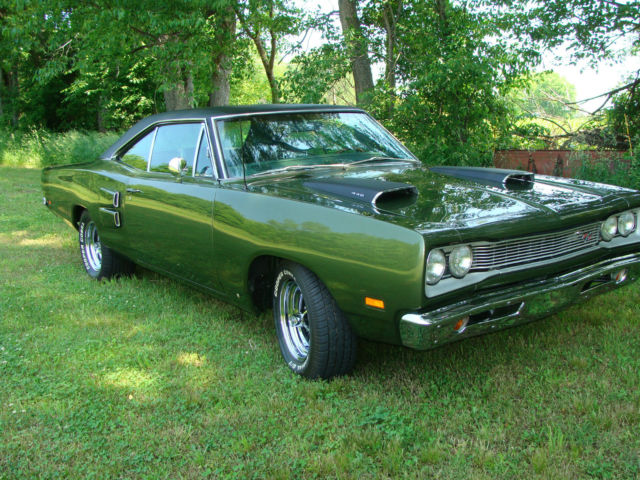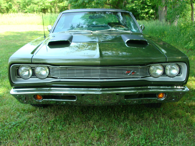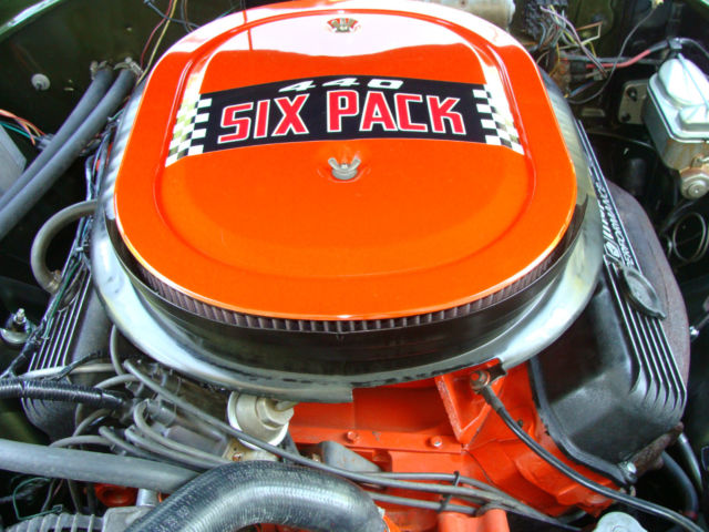 440 6 PACK HEMI TRANSMISSION 18 SPLINE. DANA 60, 54 POSI. CAME WITH A TRACK PACK, AS FRONT DISC BRAKES, OWER STEERING N96 AIR GRABBER CAR. SIDE SCOOPS. RALLY DASH AM8 TRACK PLAYER. 3 SPEAKER DASH. 4 SPEED CONSOLE. ORIGINAL FENDER TAG! RESTORED ON ROTISSERIE! EVERYTHING RESTORED TO FACTORY SPECKS. LINE 1: E86: 440 CID 4 BARREL V8 (High Performance) 375HP D21: 4 SPEED 18 SPLINE HD WS: CORNET RT 23: 2 DOOR HARDTOP L: 440 LINE 2: F8: DARK GREEN EXTERIOR AND INTERIOR 131: JANUARY 31, 969