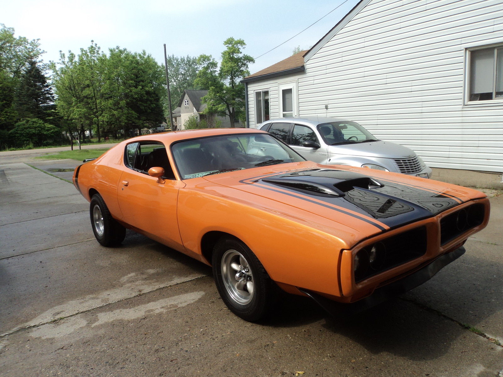 | 1972 dodge charger. 40 that's built. agle rods and keith black domed pistons and rings. urple cam shaft with solid lifters and roller rockers. 15 closed chamber heads. ver sized values & dual springs. ust had a new head job & new value guides. i have a 4 barrel carb. ooker competition header with 3in exhaust. sd ignition. 3 core aluminum radiator. lectric fan for cooling radiator. rame is tied in. utomatic trans with reverse value body. &m shifter. my body paint which is. orange pearl. was done by single source street rod in Tennessee. ower seats. ower windows. ower steering &power brakes. back windows don't go down & speedometer does not work. . mileage is not . accurate |