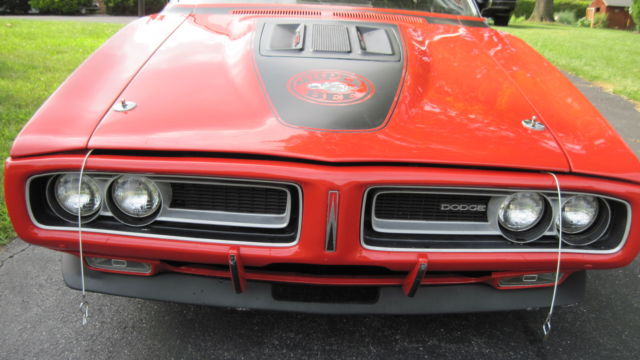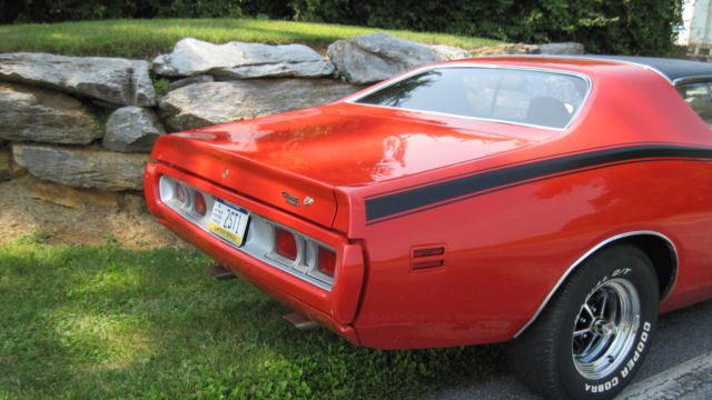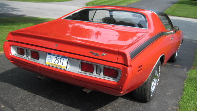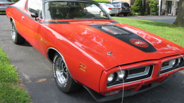 Now that I have your attention, p for auction isthis stunning Red 1971 Charger Super Bee this car is not a clone or a want to be. The Charger started out life as a 383 Magnum with of all things a three speed transmission. Which both are long gone. They have been replaced bya 1970 440 Six Pac engine and Four SpeedTransmission. The Chargerhas new legendary seats. The carpet, headliner and door panelsare fine. The dash has no cracks. All windows roll up and down as they should wipers work andall lights work. Although the gas gauge works sometimes. The Charger runs down the road absolutely flawless does not wander or tend to go to one side or the other. Als, t has a new steering box and power steering pum, he disc brakes have new Calipers and pads the rear brakes have also been gone through. There are many new suspension parts along with newshocks at all four corners. The car is equipped with a new custom-madeexhaust system. This Charger Super Bee's motor has been recently rebuilt. Six Pac set up works absolutely terrific the clutch and transmission also function nicely. There is absolutely no rust on this car, t is not filled with bondo or plastic fille, lthough I'm sure in its life, t has had a few bumps and bruises but there is no indication of any major accident or replacement parts anywhere on the body. The red paint has a beautiful shine with very few imperfections. Here is a very desirable Charger Super Bee 440 6 Pac four-speed for half the price of an original Six Pac code car.