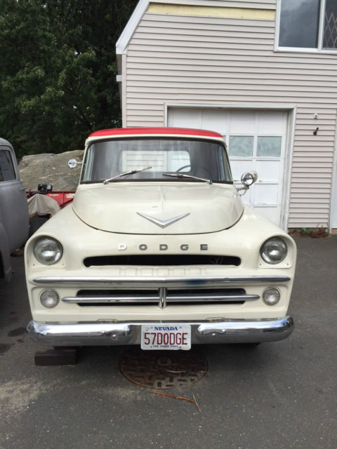 | Rare 1957 Dodge pickup. Older restoration. Still looks good. I'm told the motor rebuilt. it is not in the truck. I purchased it at an estate sale with 11 other vehicles. V8 with 3 speed transmission. Interior still looks good. Originally from Nevada. Now has a CT title. For sale as is. I've seen these trucks sell for 20-50k. You finish & save thousands. Call for any more info: 2039106885. |