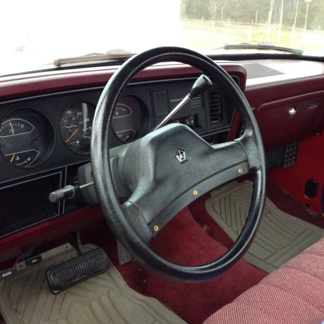 Clean Dodge standard cab truck. Super nice condition. Fuel injection (first year for Dodge). Automatic 3 speed in great condition. 318 V-8 is low miles of possibly under 100K. It is a super strong engine. Red color, as been repainted (in recent 2-3years),original color. Red interior. Just did tune-up and checked out overall condition, hich is great. Bed is super clean,and showsno signof abuse. Tail gate closes tight, nd has no dings. Bed is fine as well. The dash and all interior is very clean. Driver side bench seat has wear as shown in picture. Floor is carpet(red), ood condition. No rust. No cracks in glass. Manual style works great. Locks work fine. Power steering is tight. Truck has apparently never been used as hard work truck. Short wheel base is rare in these older Dodges, nd gives a sporty look. The only damage to interior is the seat on driver side. No signs of wreckage repair on body. Very straight grill, umpers, tc. Take a look at the pictures. This has the real chrome steel bumpers--front and rear. Grill is clean and totally original. No rust spots on hoodor in bed.Dark looking spots aredirt from it being stored at barn over last year. That's right, little dirt on it (maybe one of those eBay guys with the "shinyads" can help ( ha-ha)... If you want an original 318 Dodge D100, ou won't find one any more original and classic. Sorry that I was unable to post the engine pix. The motor is clean and has not been steamed or tampered with. Other issues: battery is weak, ut will serve as drivable. No air, think. Radio is good. Nice sounds. Heater fine. Thank you for the interest. |